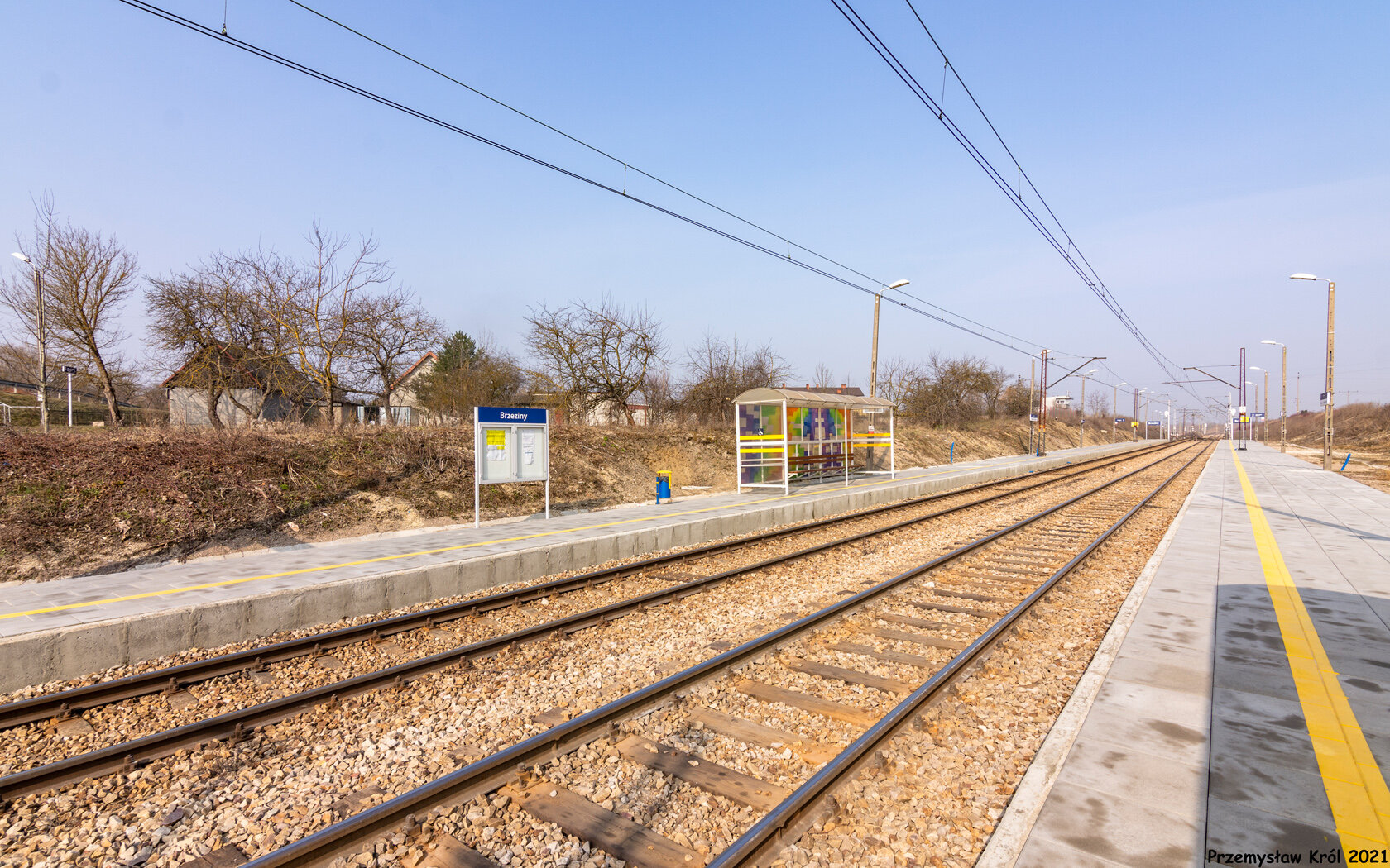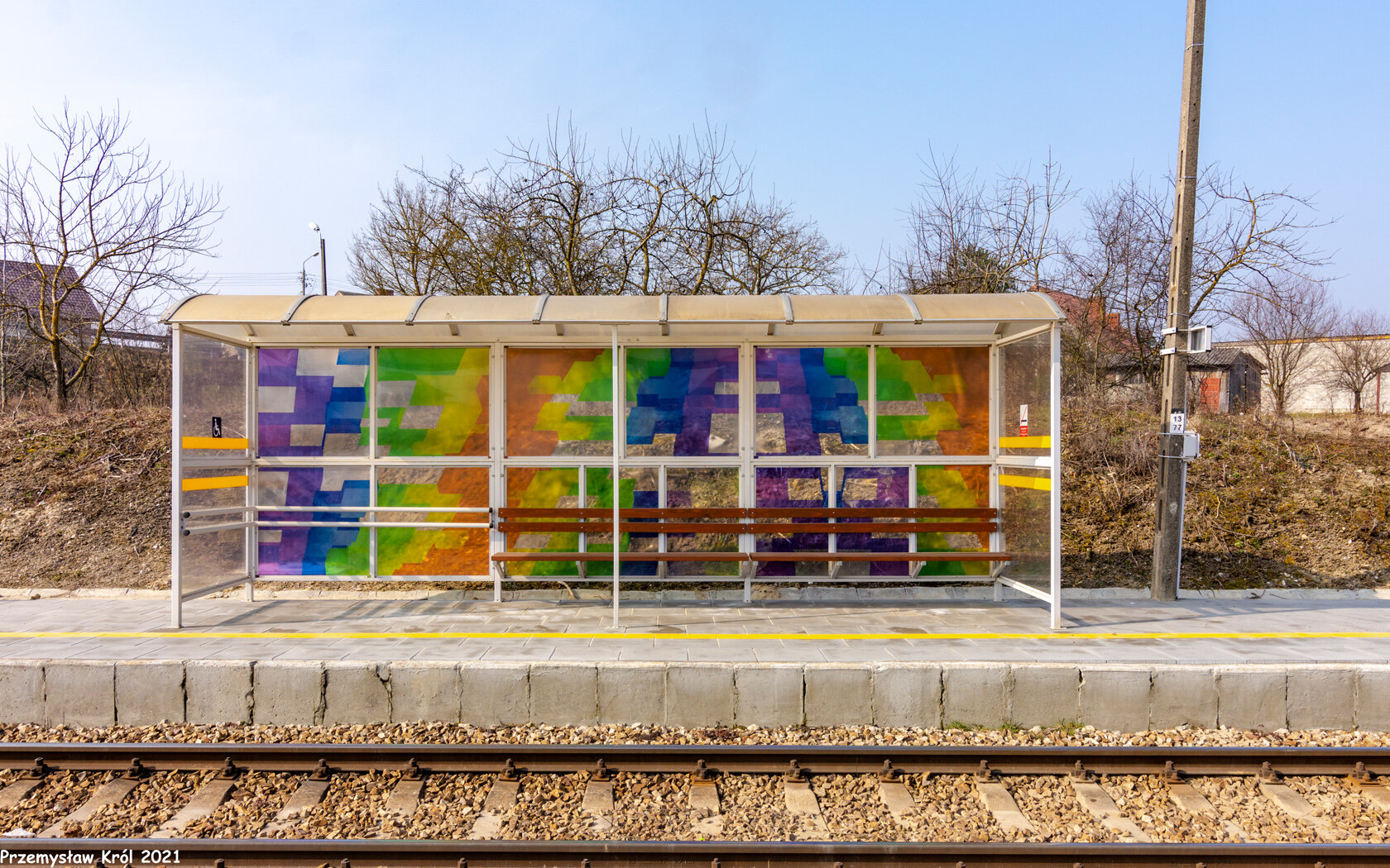Wiata dla podróżnych oczekujących na pociąg do Kielc.