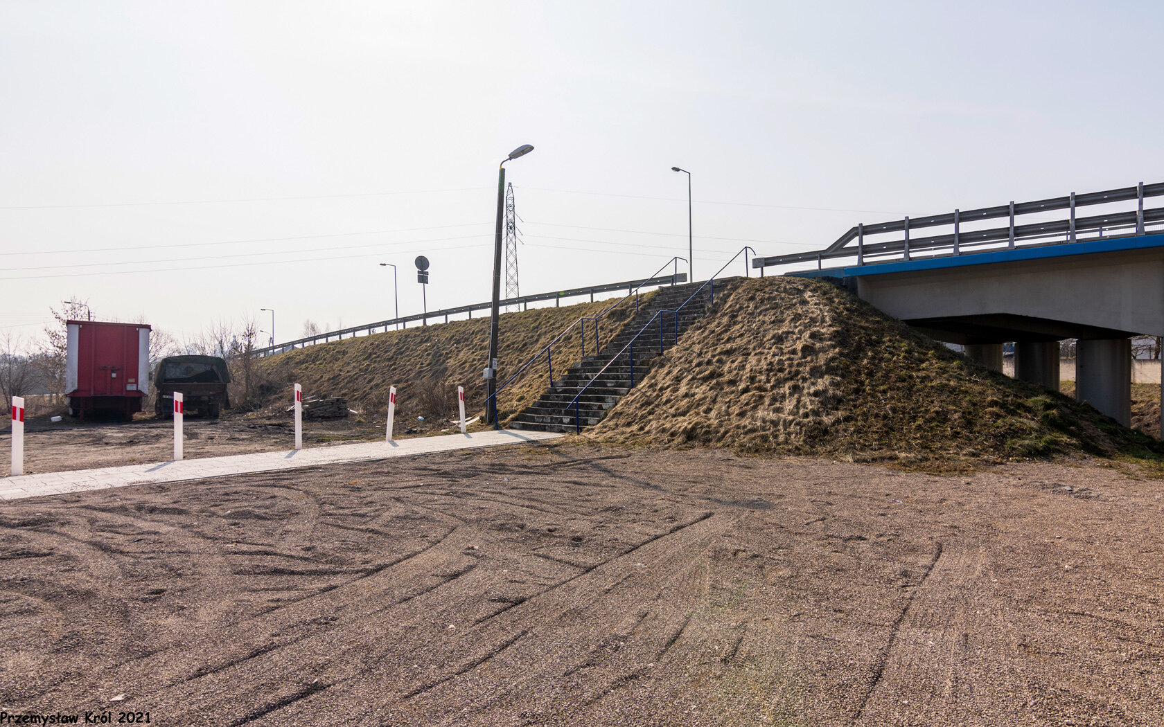 Słupy podtrzymujące sieć trakcyjną również nie są w tych samych miejscach.
