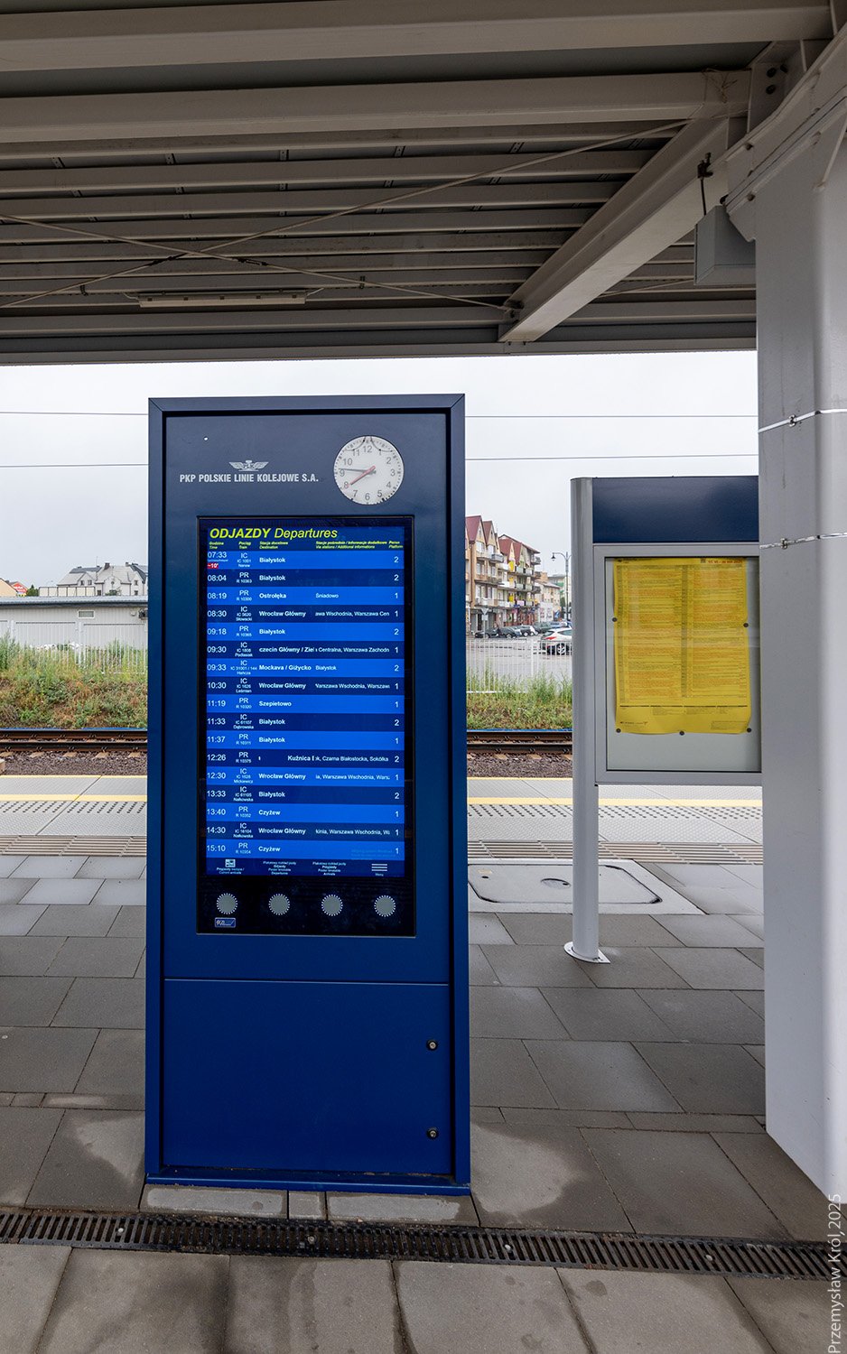 Pociągów jest tutaj bardzo mało na elektronicznym wyświetlaczu rozkładów jazdy jest godzina 7:47 już są wyświetlone pociągi, które przyjadą tutaj o godzinie 15:10. Kolejowy dramat Podlasia, linia dostosowana do 200 km/h, a pociągów mało.