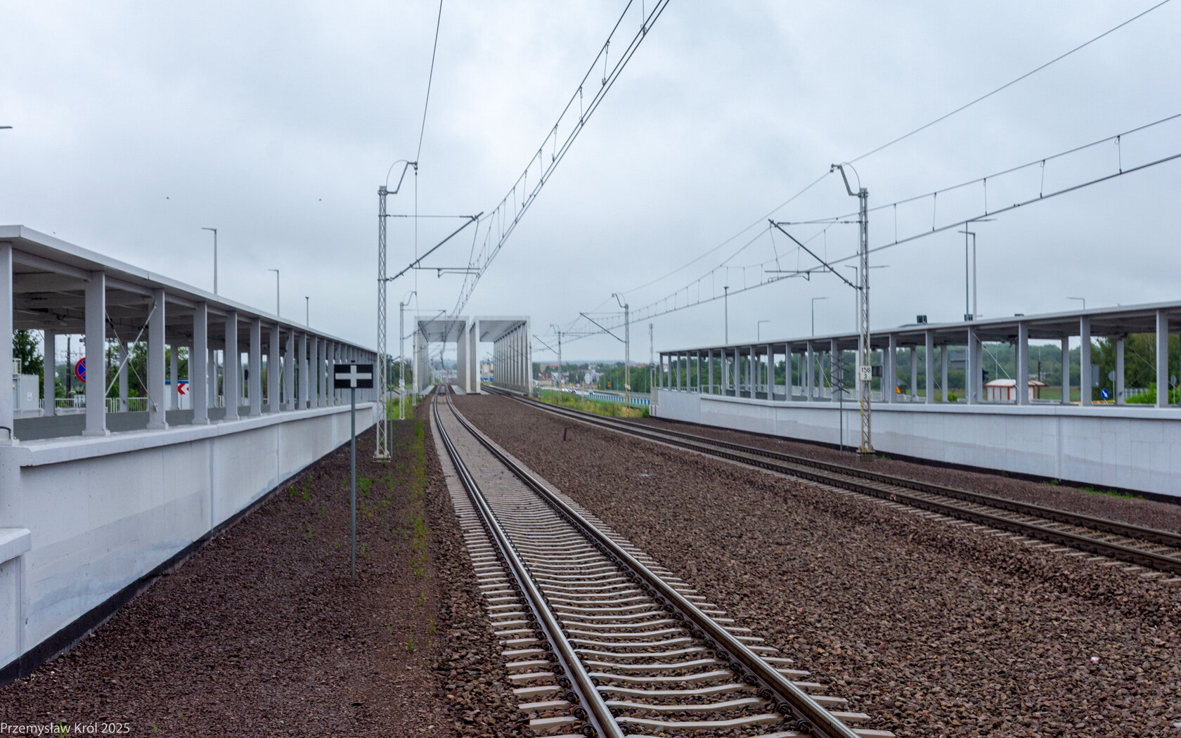 Ujęcie na zakończenie peronów, obie platformy są położone symetrycznie względem siebie.