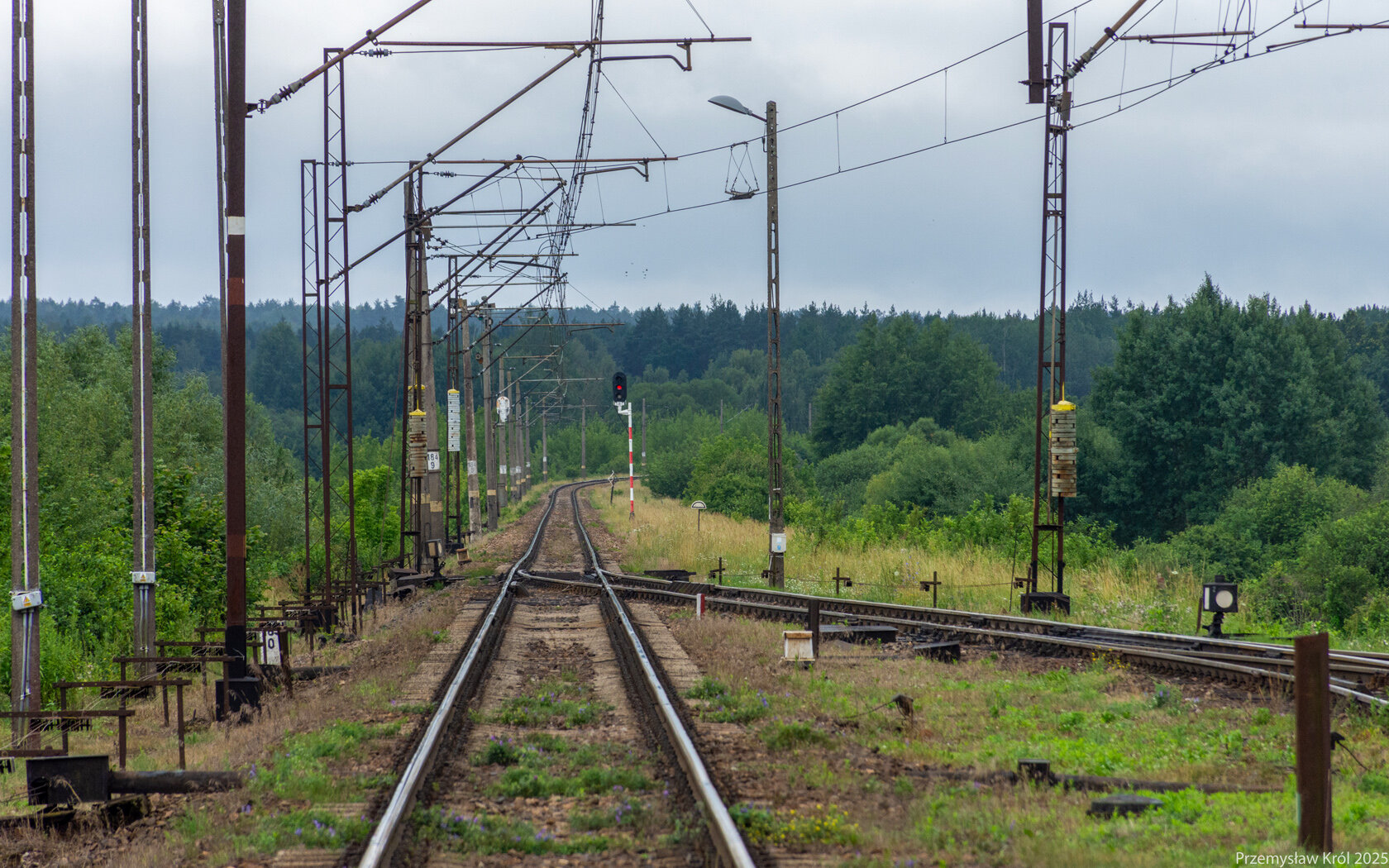 Kadr w kierunku Białegostoku, od stolicy województwa podlaskiego do granicy państwa linia numer 6 jest już jedynie linią jednotorową.