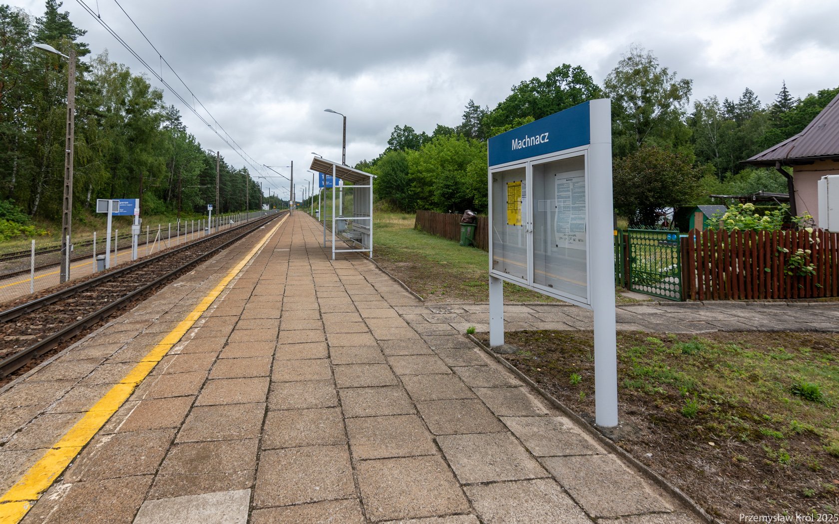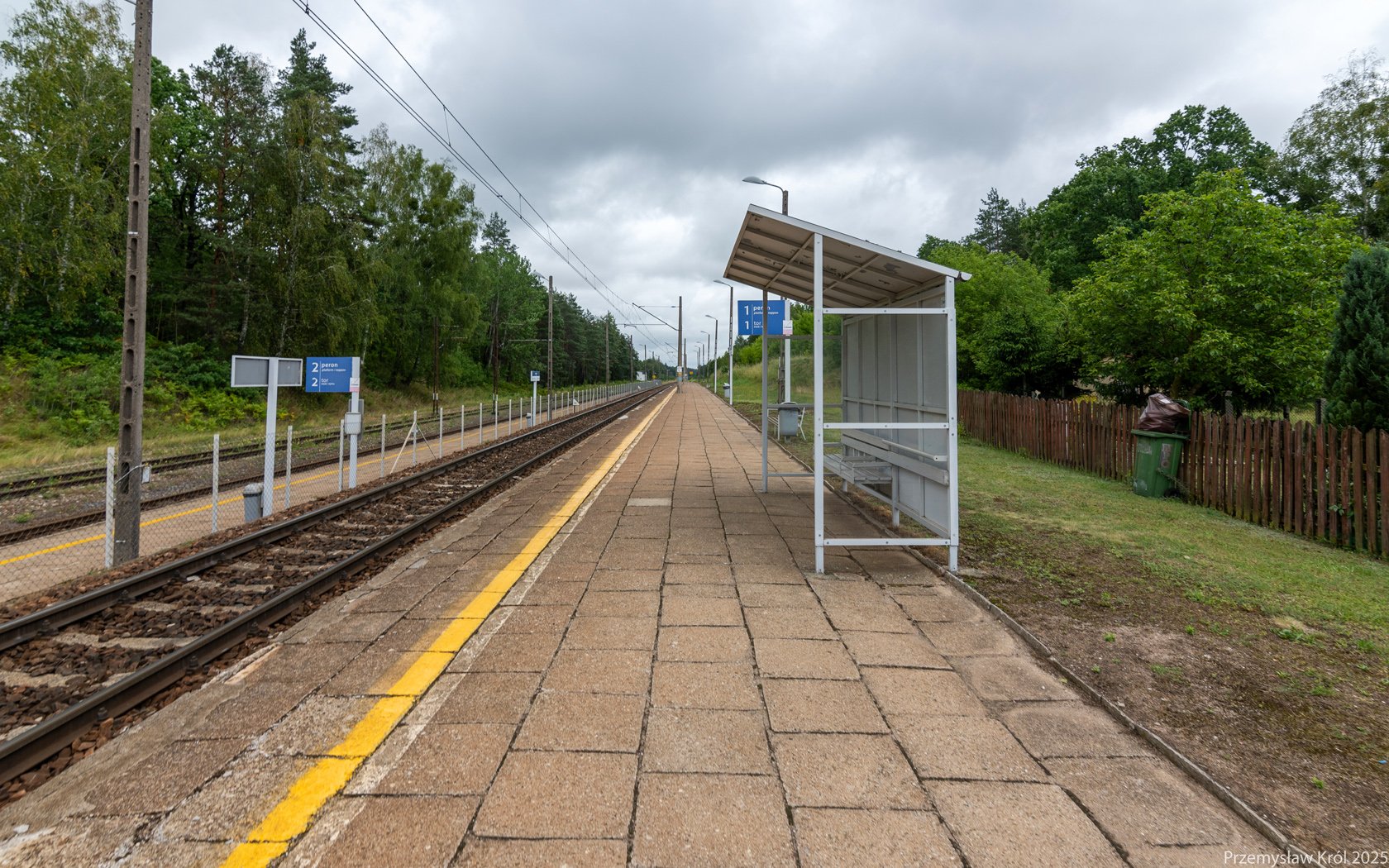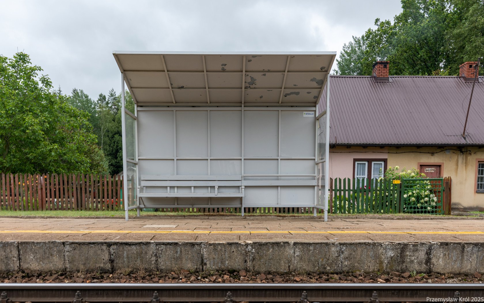 Na peronie jest jedynie mała wiata chroniąca pasażerów przed deszczem.