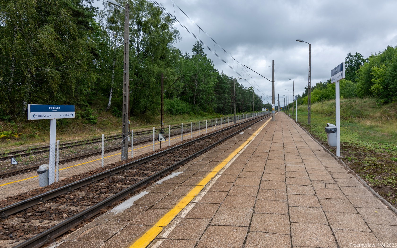 Tablice kierunkowe nie do końca są spójne obie wskazują kierunek zachodni jako Białystok natomiast na wschód z pierwszego peronu dojedziemy do Sokółki z drugiego do Suwałk.