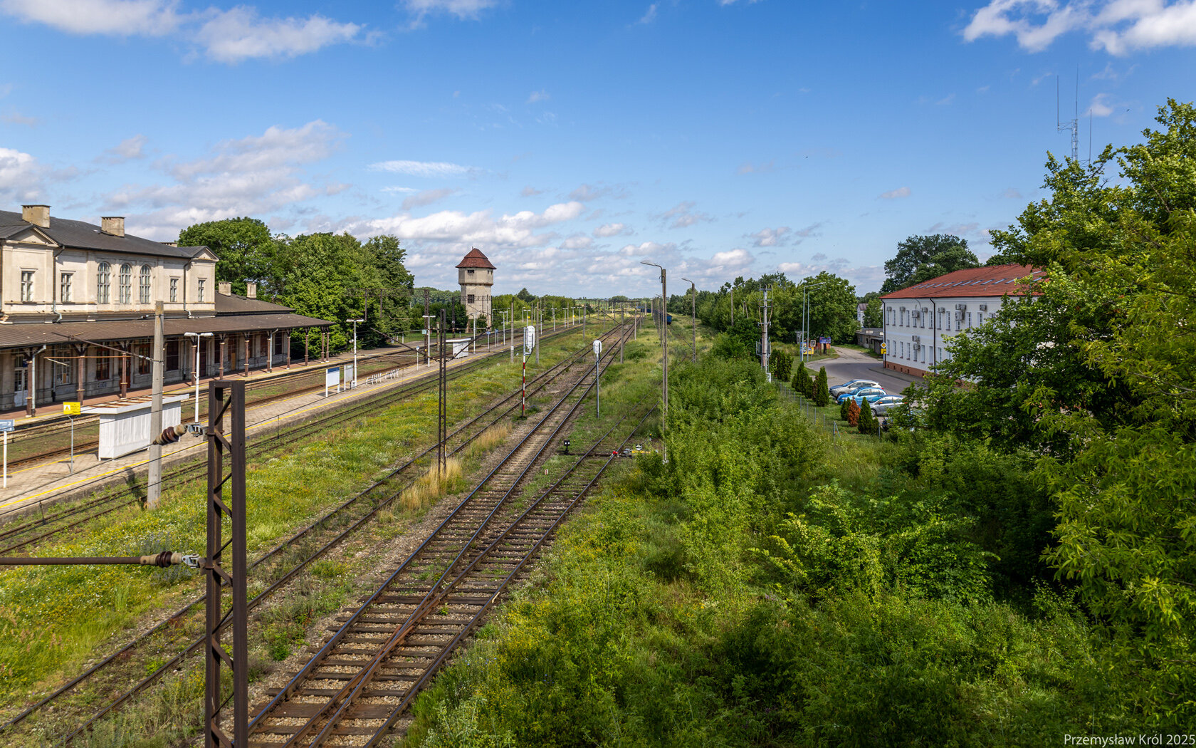 Widok z kładki nad torami na tory dodatkowe stacji (głównie dla pociągów towarowych).