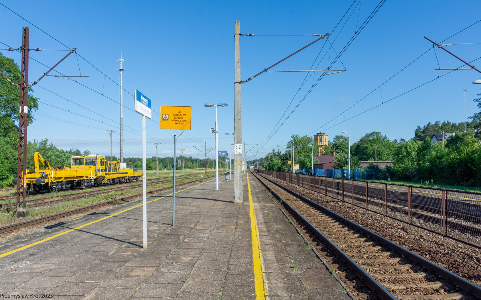 Przystanek na biegu mija lokomotywa PKP IC ze składem pasażerskim, skład zatrzyma się dopiero w Białymstoku.