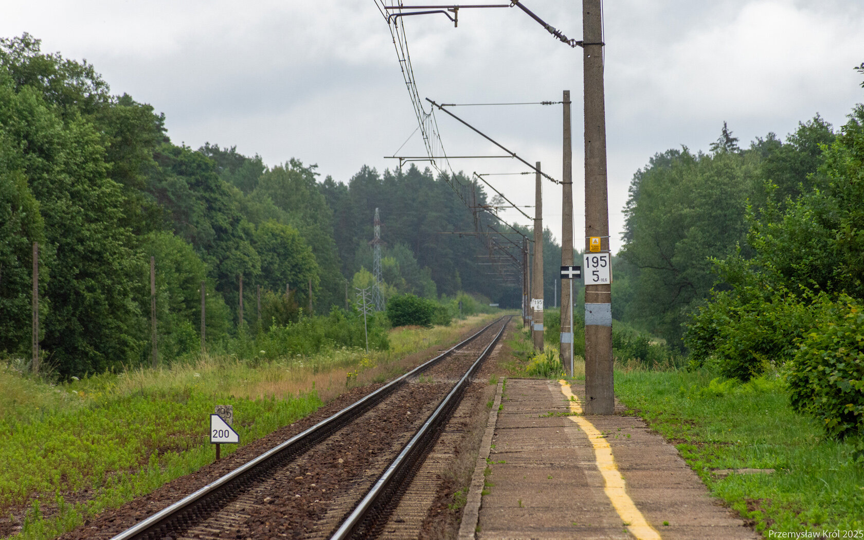 Ujęcie na długi peron przystanku osobowego od strony jego końca w kierunku wyjścia.