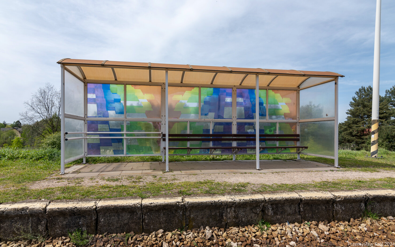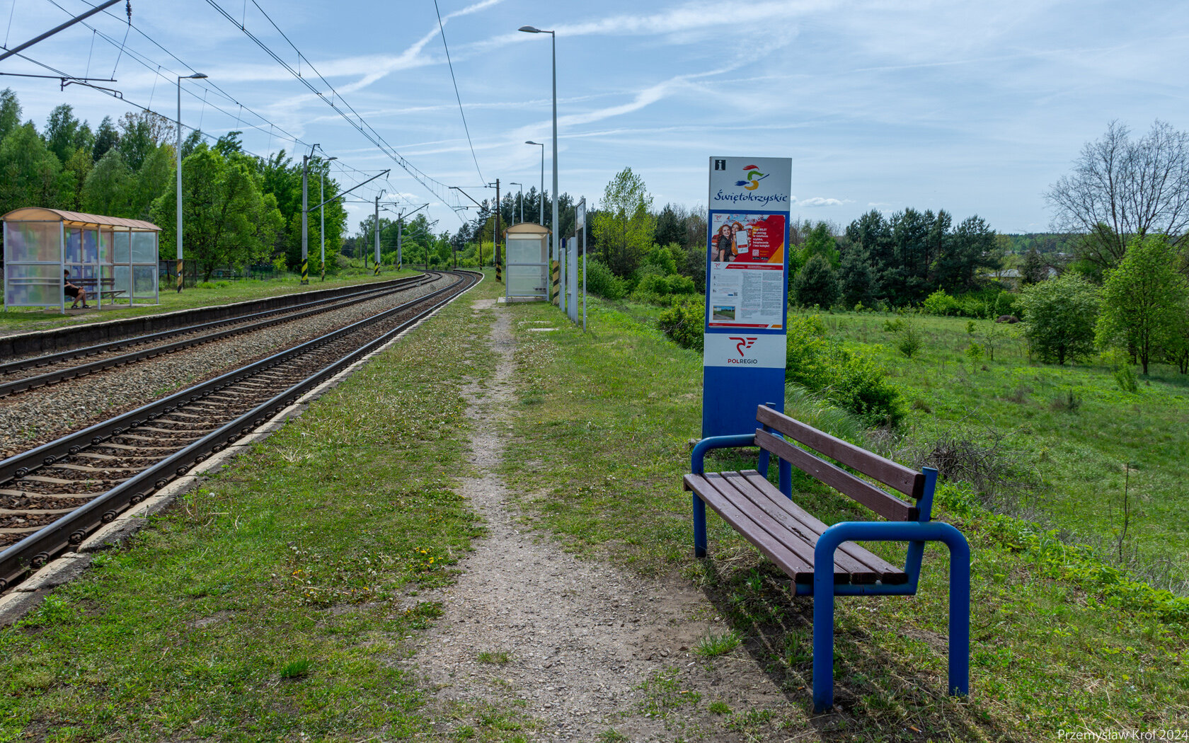 Na peronach są ławki "pod chmurką" ale również są zamontowane zadaszone wiaty.