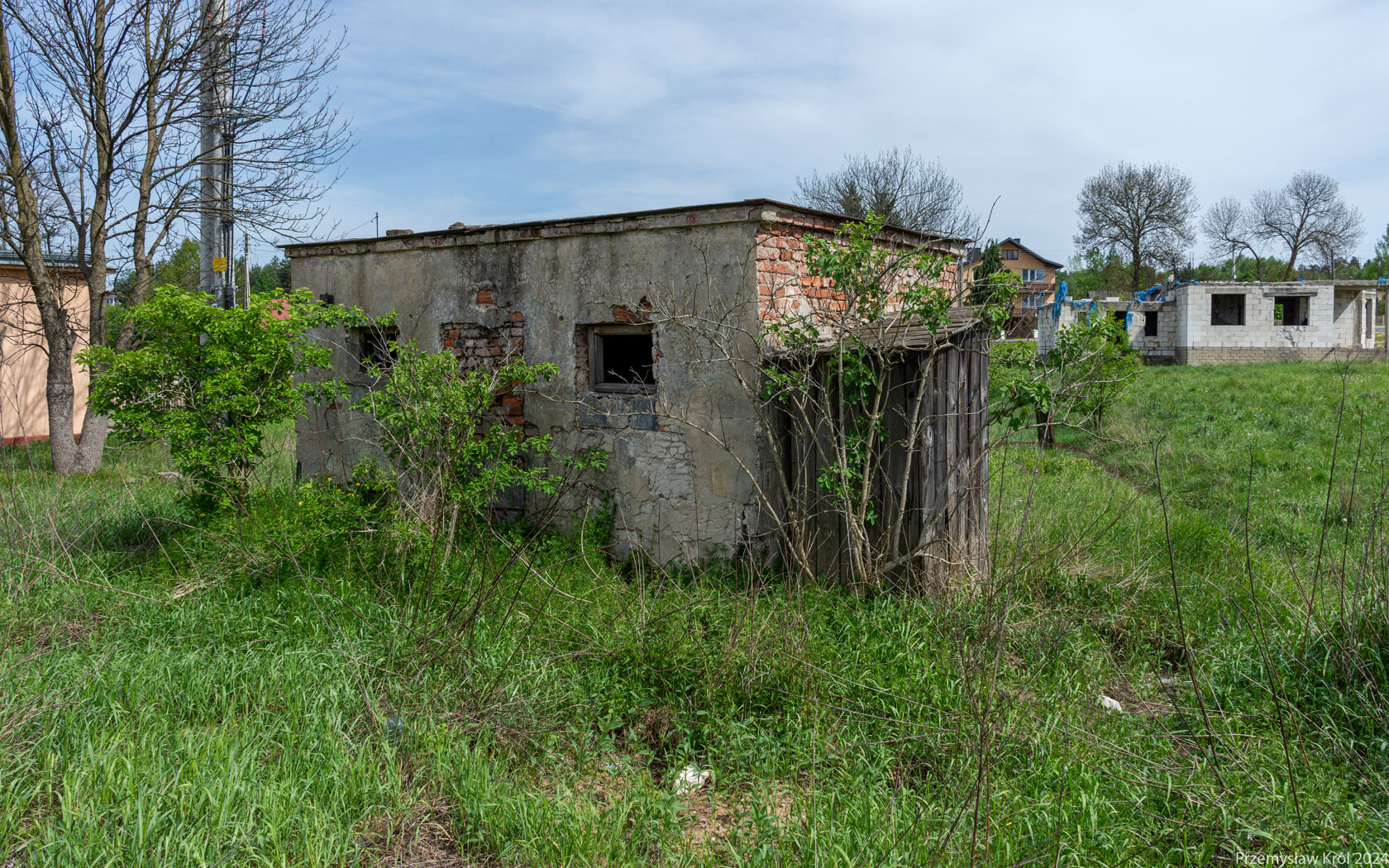 Prawdopodobnie dawny magazyn przy drugim peronie, obok drewniana sławojka.