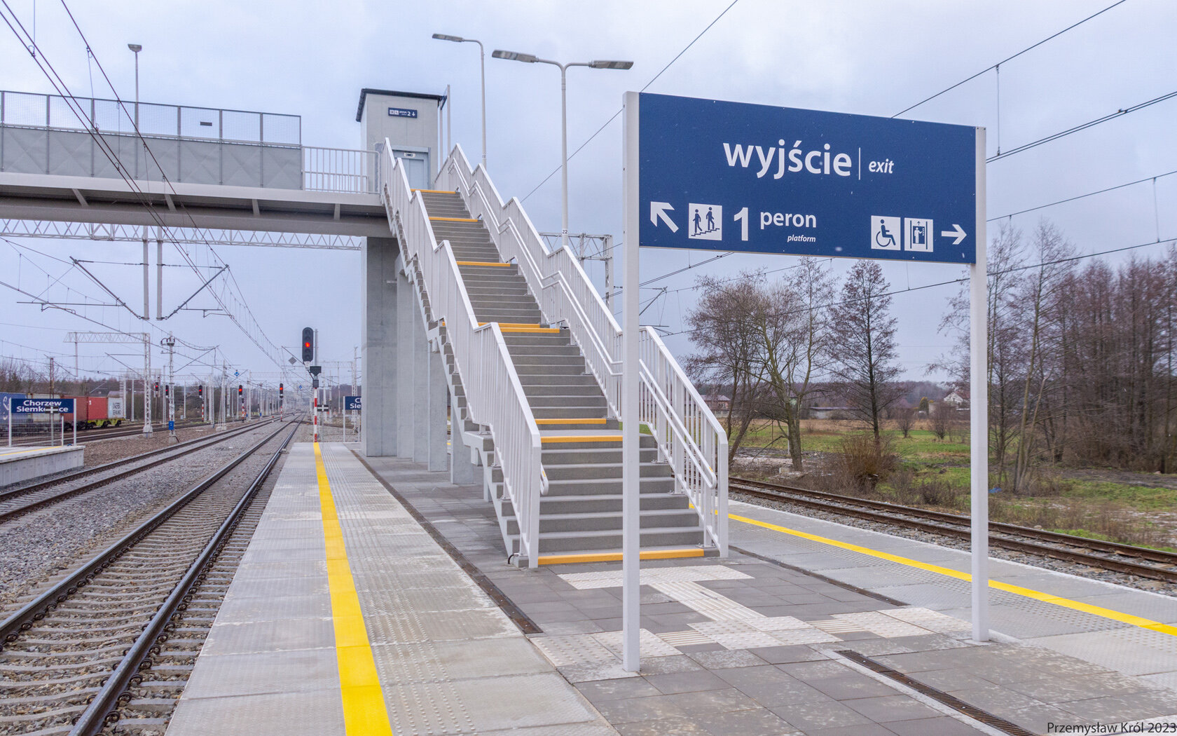 Olbrzymie przejście nad torami umożliwia dostanie się na dwa perony, ciekawe czy powstanie kolejny peron do obsługi połączeń do Wielunia ... o ile powstanie linia Chorzew Siemkowice - Wieluń Dąbrowa.