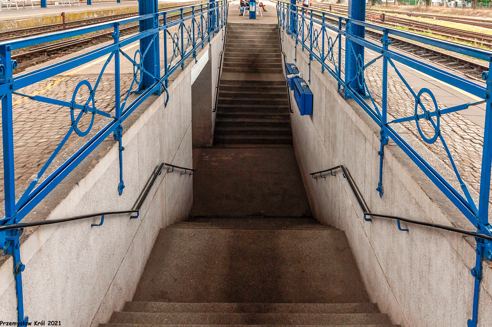 Przejście przez tory w niezelektryfikowanej części dworca łączy ze sobą perony 3,4 i 5, umożliwia też dojście do hali spółki Polregio.