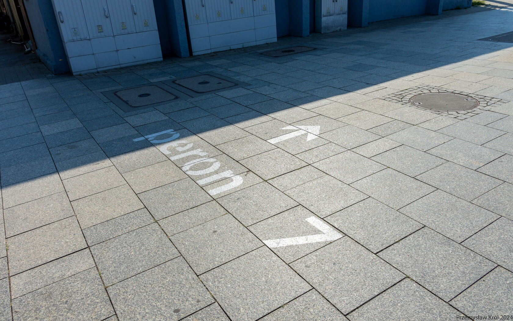 Oznaczenie na ziemi wskazujące dojście do peronu 7.