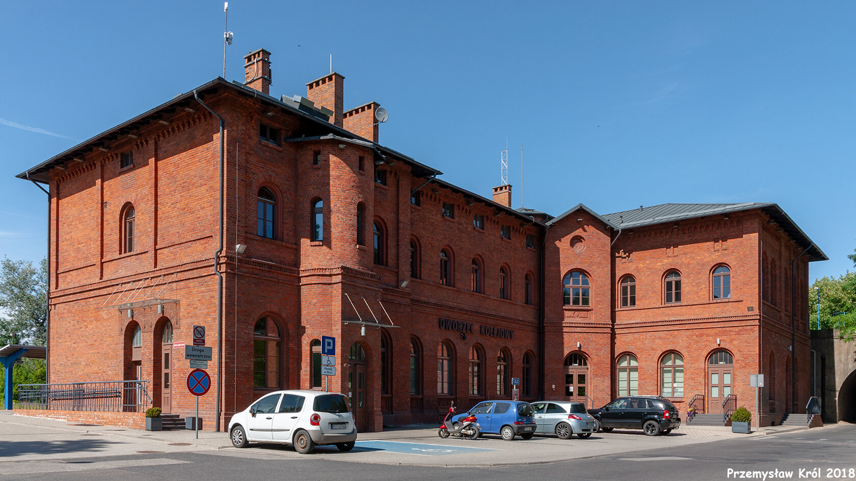 Widok z czwartego (górnego) peronu na budynek dworca.