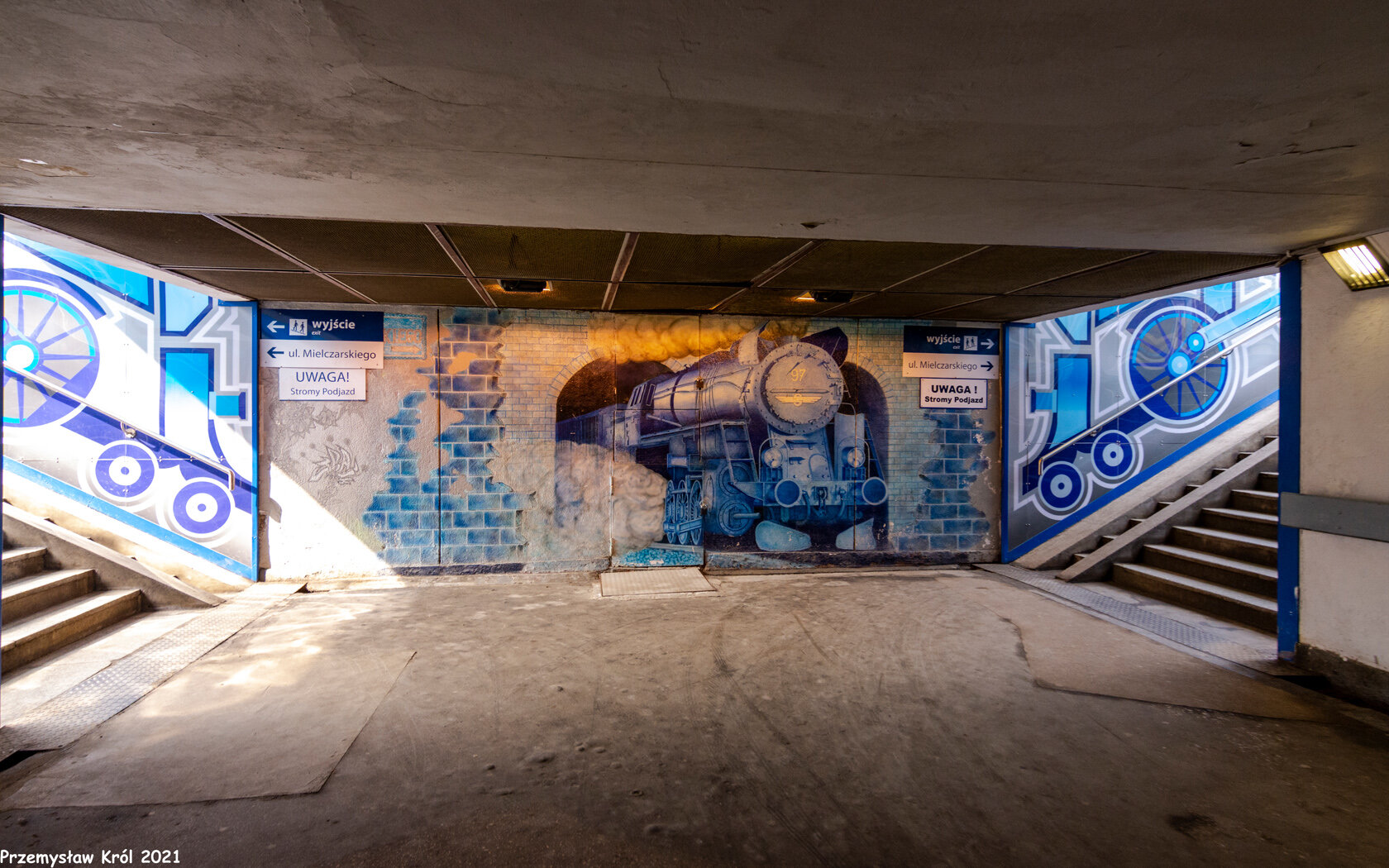 Mural w przejściu pod torami od strony ulicy Mielczarskiego Przestawia on lokomotywę serii Ol49 o numerze 97. Lokomotywa ta chyba nie była związana z Kielcami.