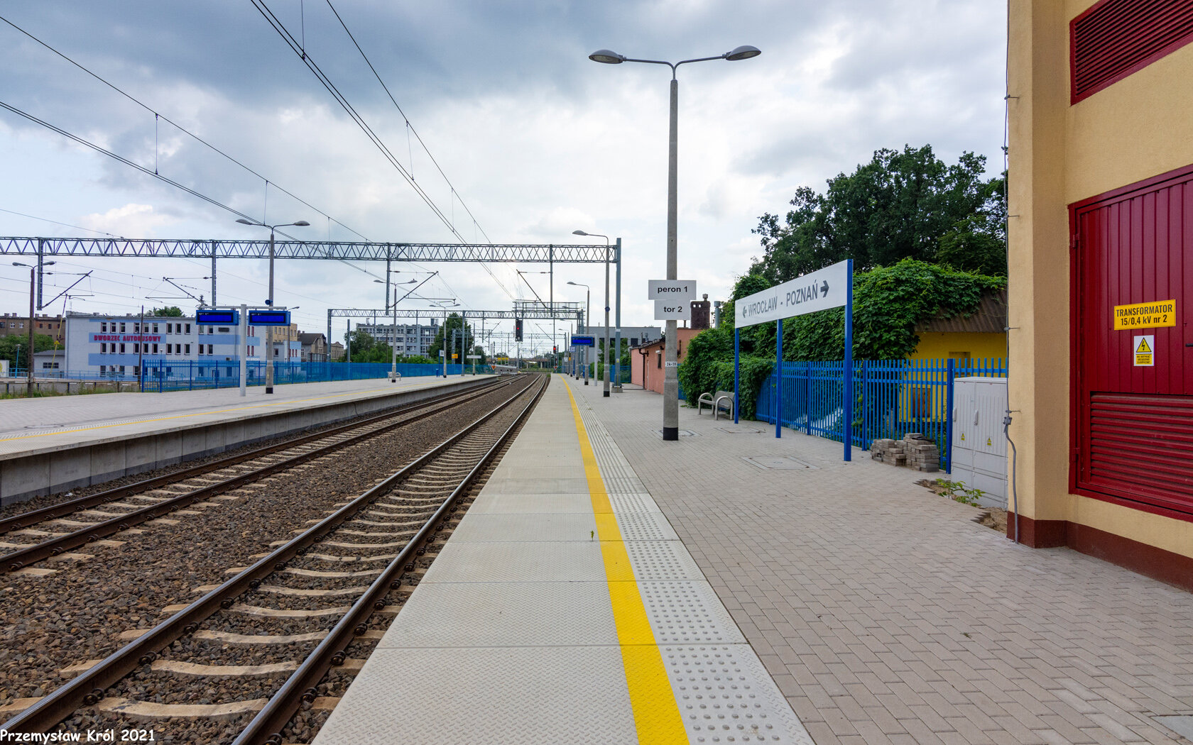 Peron numer 1 tor numer 2 widok w kierunku na Wrocław.