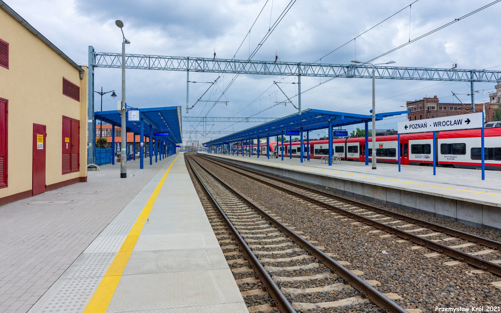 Krawędź peronowa dla pociągów jadący z Poznania w kierunku Wrocławia.