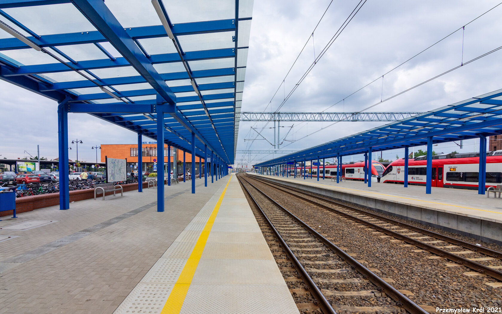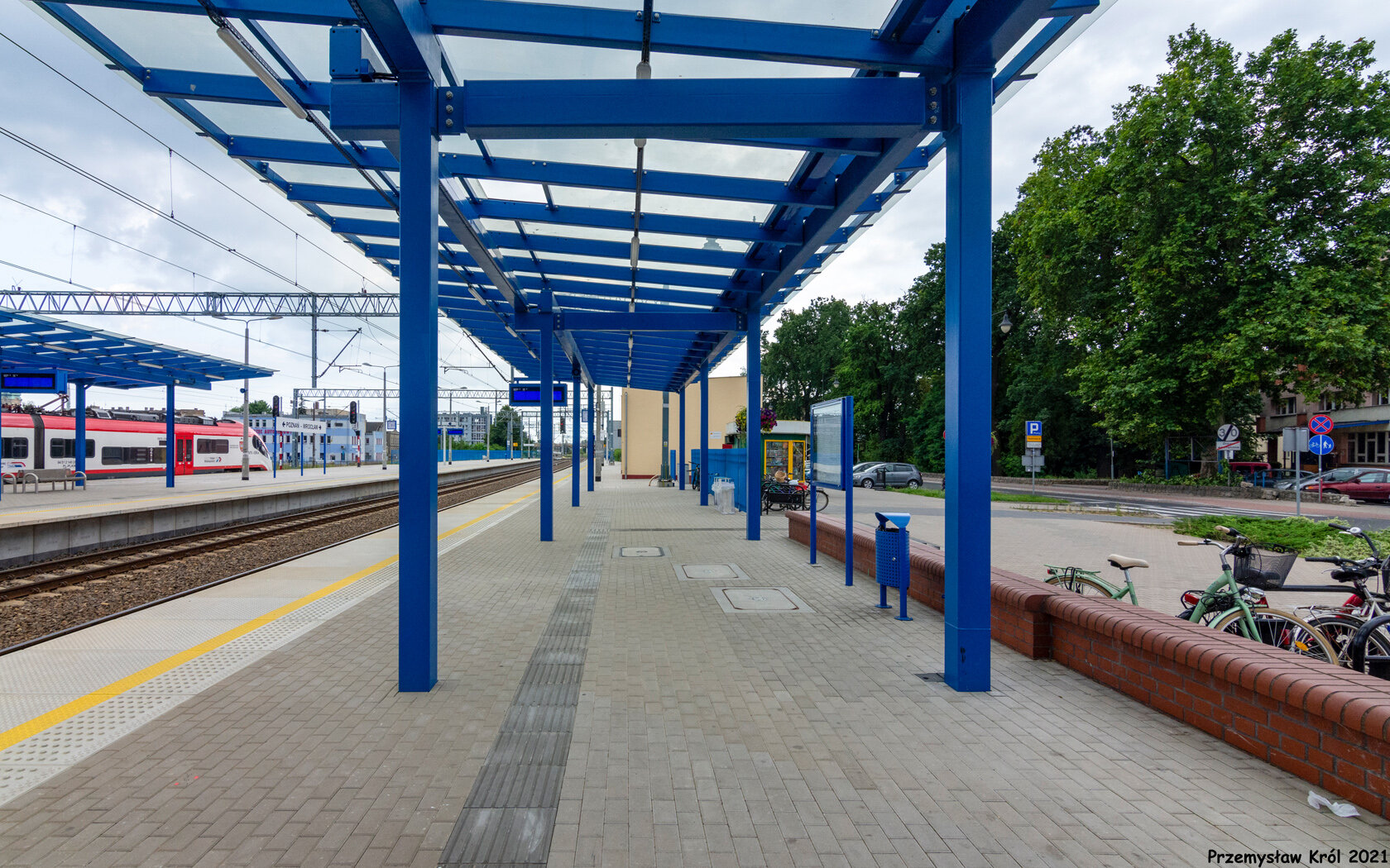 Widok z pierwszego peronu stacji na nowe wiaty przystankowe (na peronie 1 i 2).