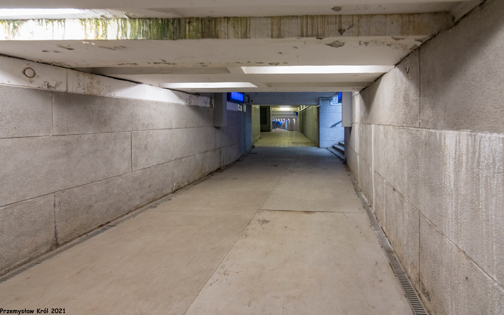 Pod torami przejście łączy wszystkie perony, przejście jest wyremontowane w połowie (dla perony 1 i 2) dla peronów 3,4 i 5 przejście jest niezmodernizowane.