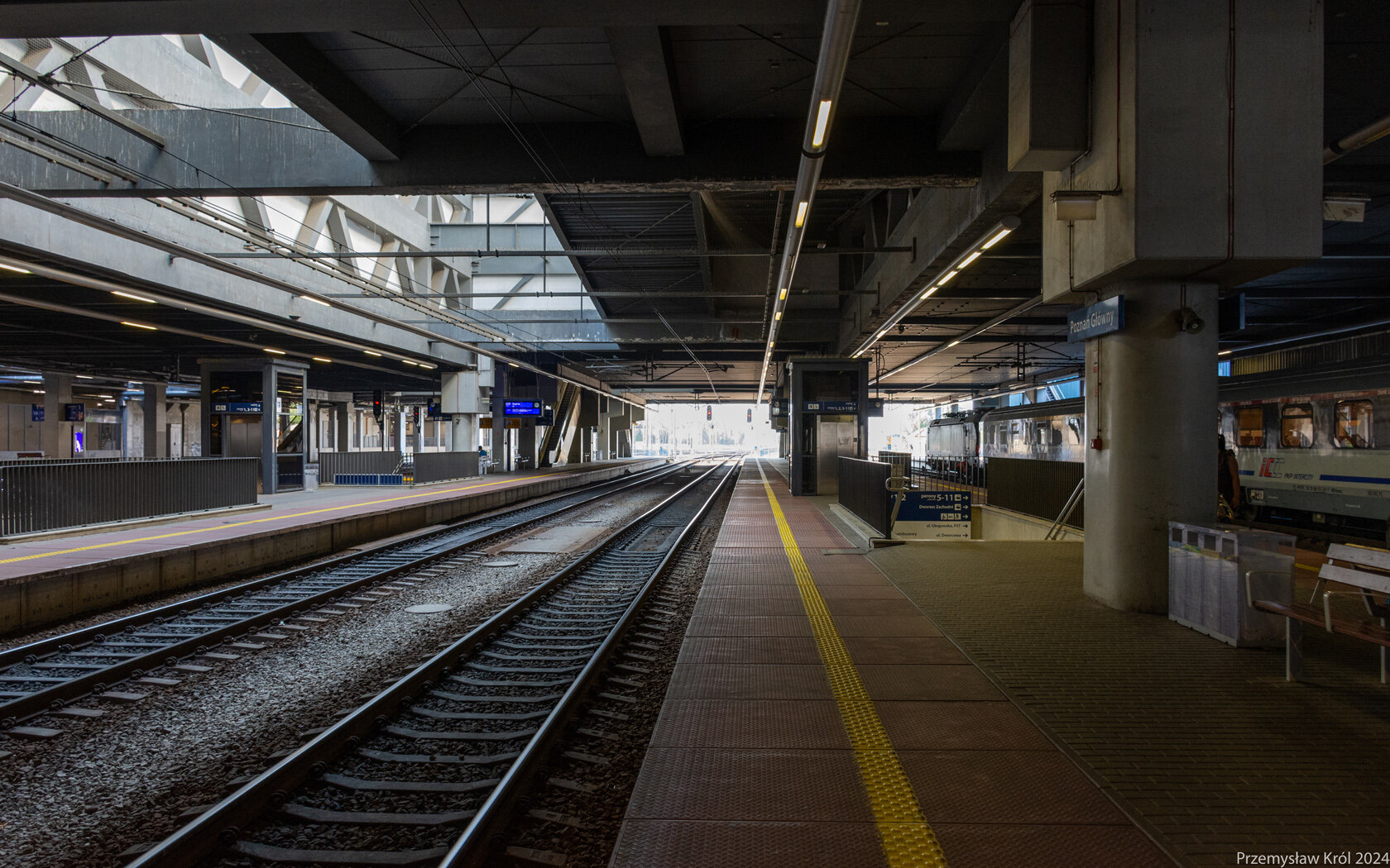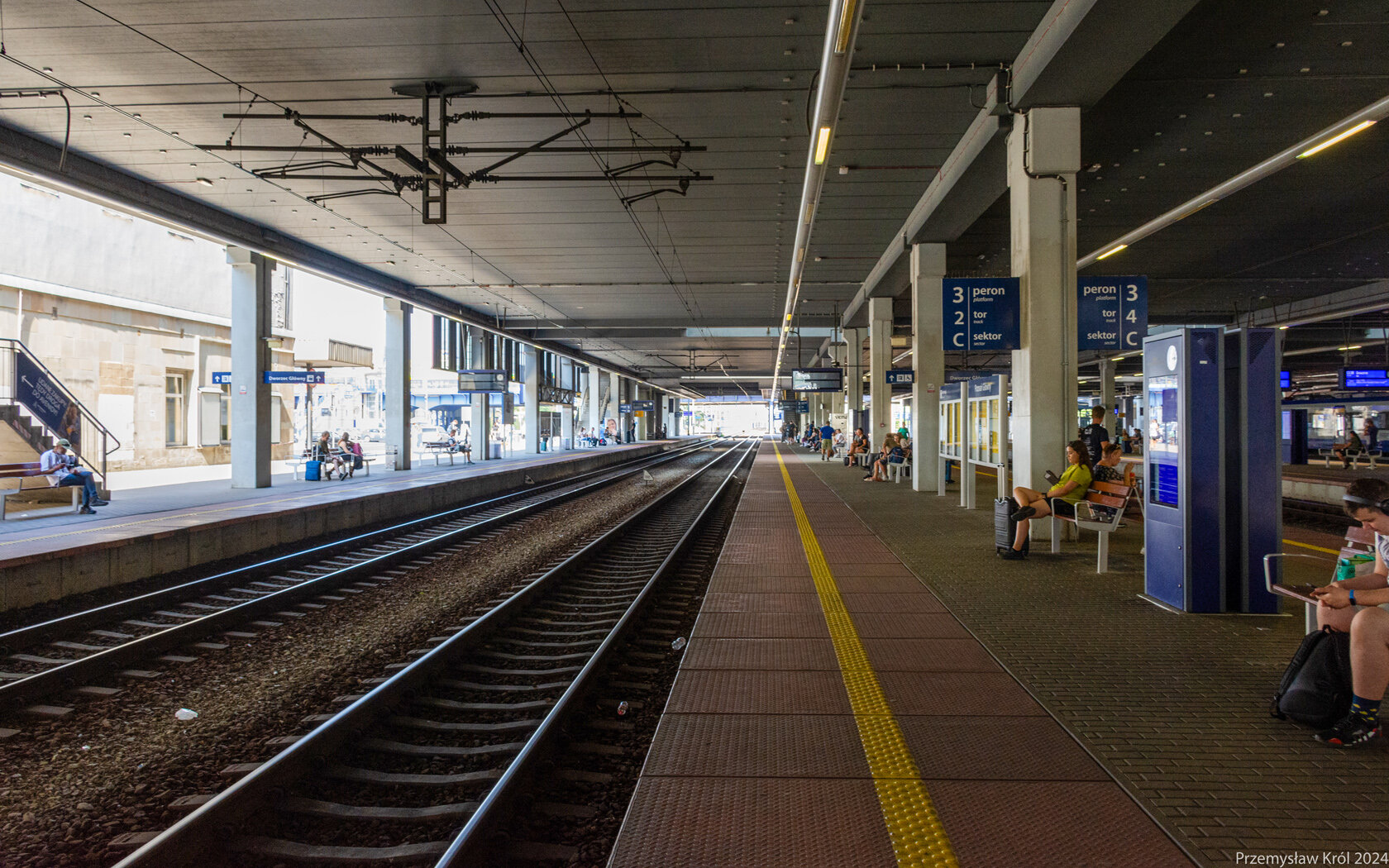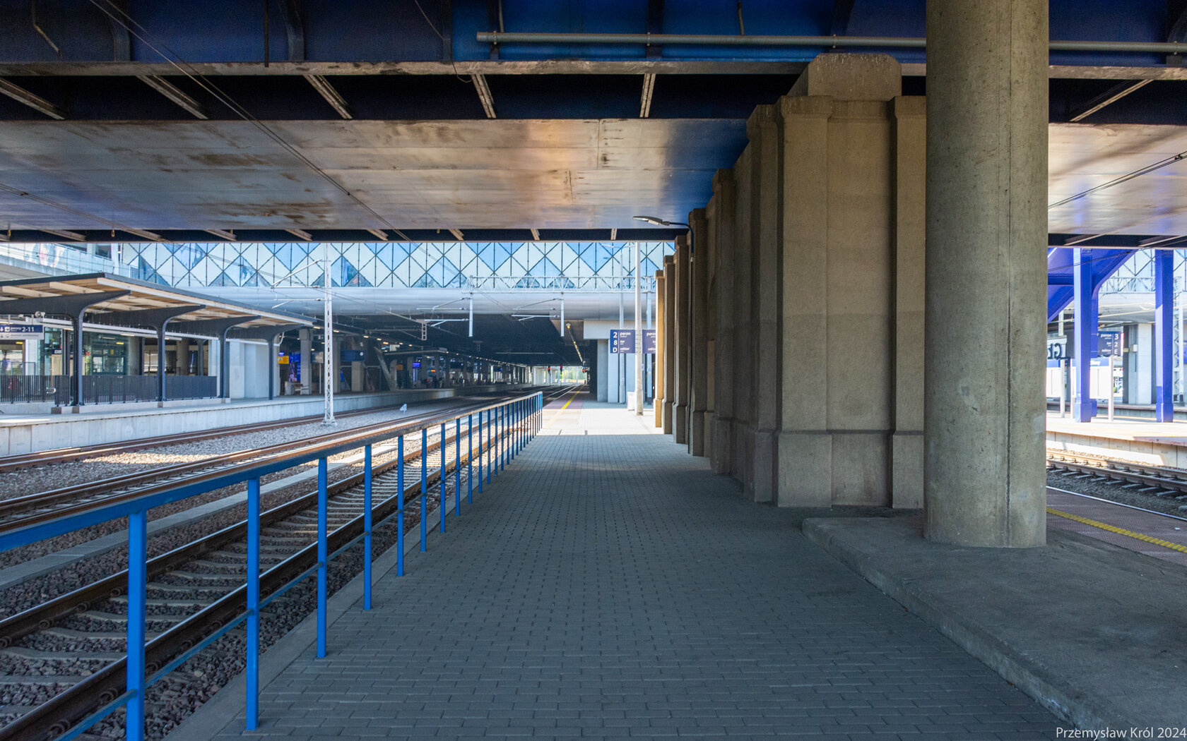 Oznaczenie peronu i torów na niezadaszonej części.