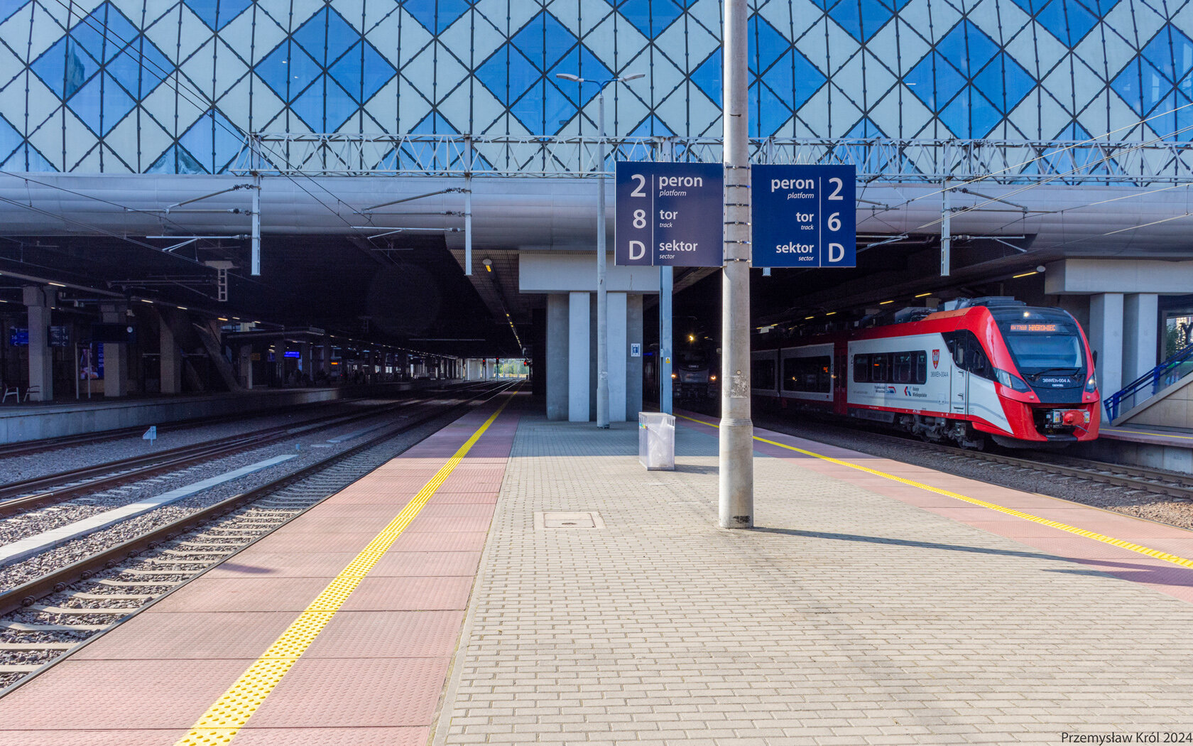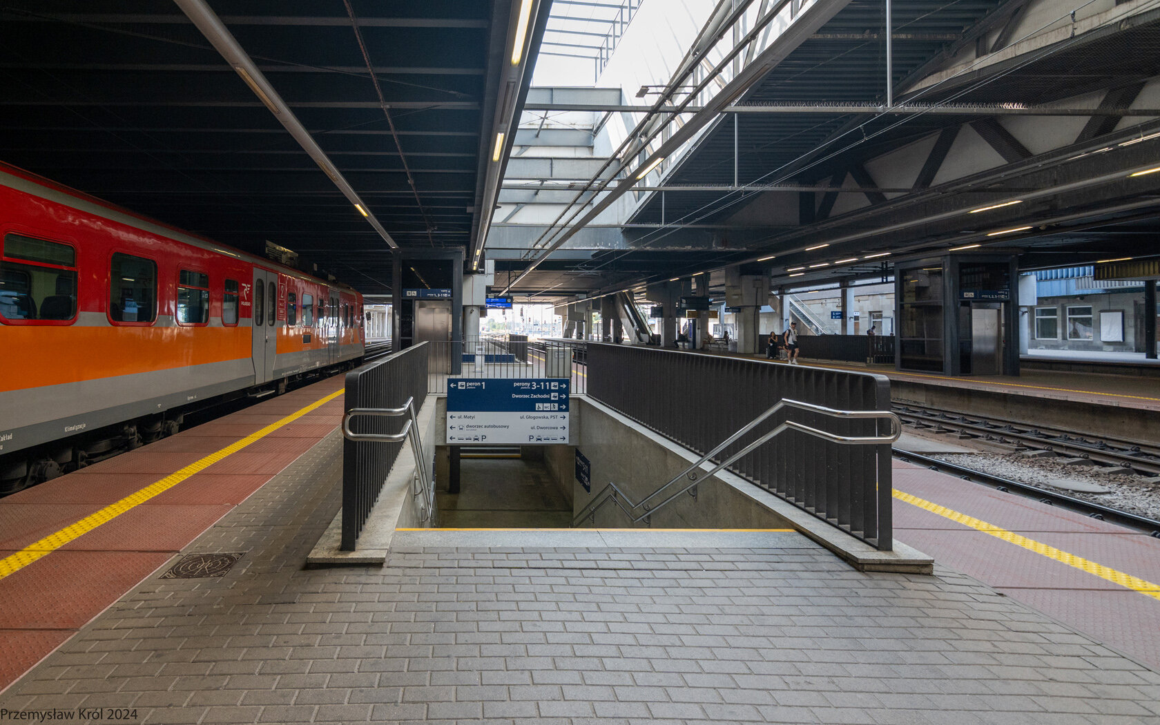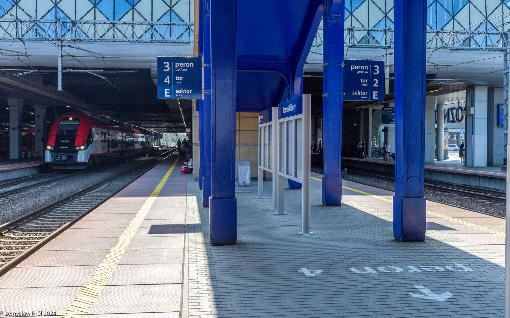 Peron numer 3, tory numer 2 i 4, na ziemi oznaczenie kierunku dojścia do peronu numer 4.