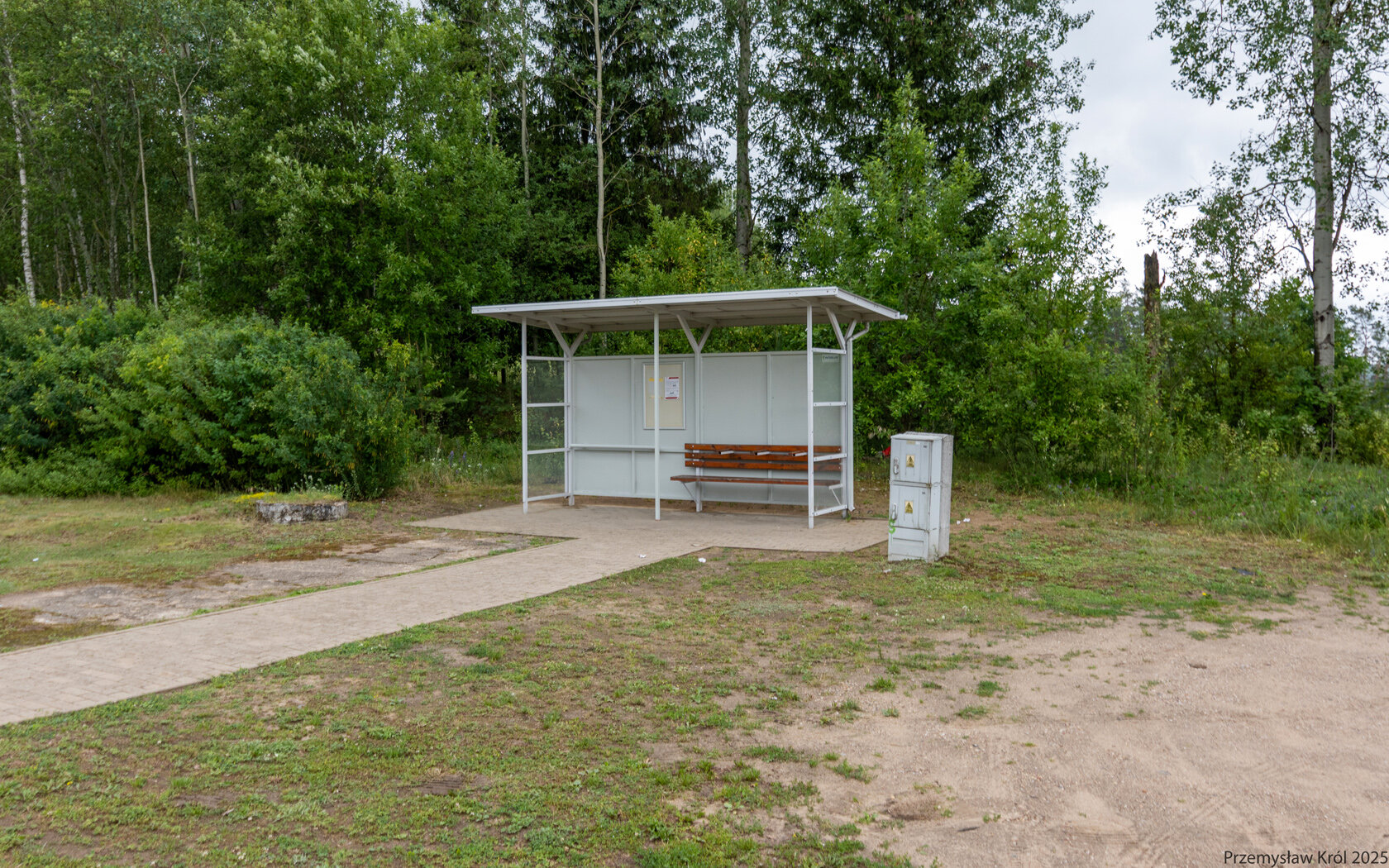 Wiata przystankowa jest położona nieco dalej od peronu.