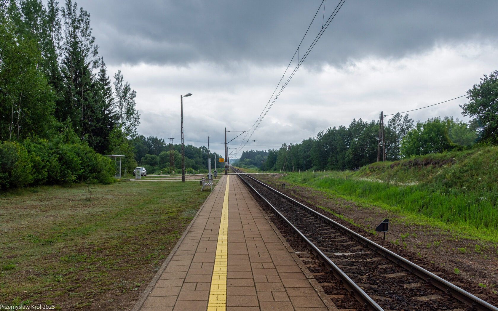 Pociągi osobowe jakie się tu zatrzymują stają bliżej przejazdu kolejowego, tamta część peronu jest nieco wyższa niż, ta na której się znajduję wykonując to ujęcie.