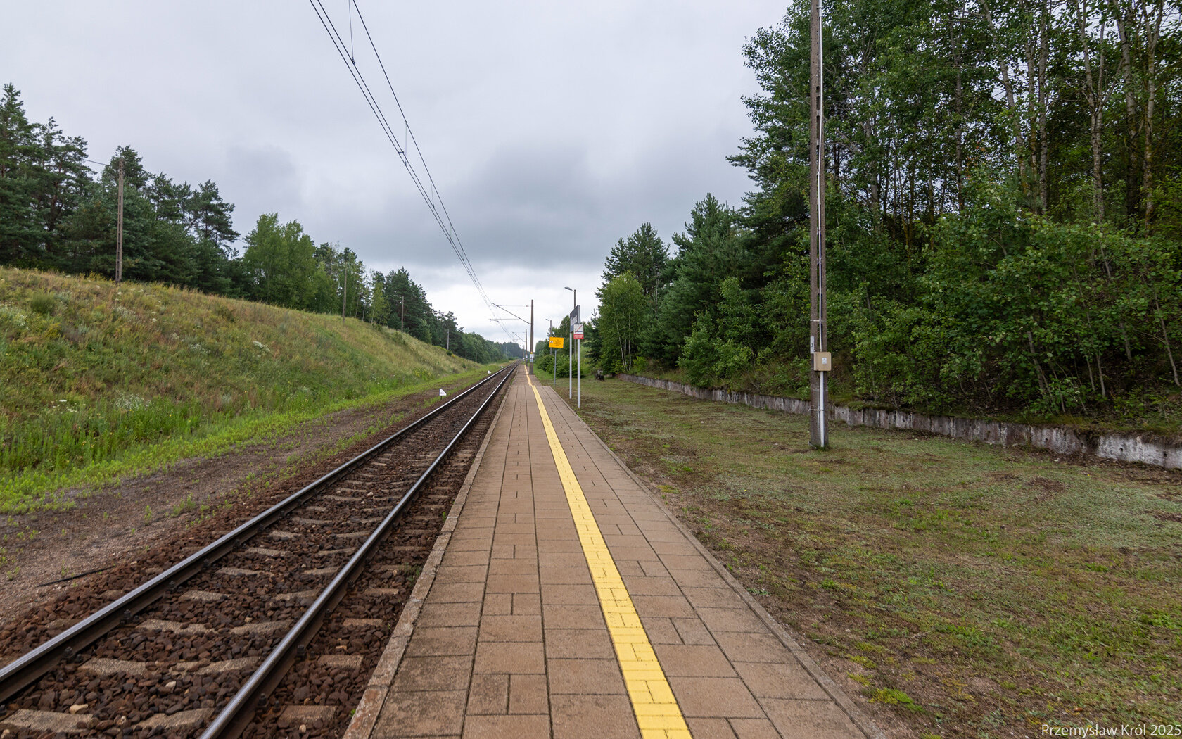 Nieużywana część peronu przystanku osobowego na 195,4 kilometrze linii numer 6.