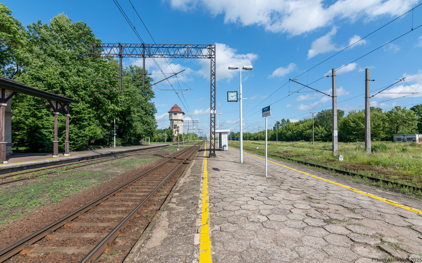 Na drugim peronie jest wysięgnik sieci trakcyjnej obsługujący podwieszenie sieci elektrycznej dla torów 1 i 2.