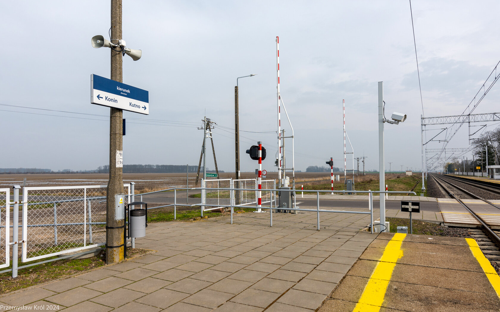 Przejazd kolejowy dzieli perony stacji na peron zachodni (dla pociągów jadących do Poznania) i wschodni (dla pociągów jadących w stronę Kutna).