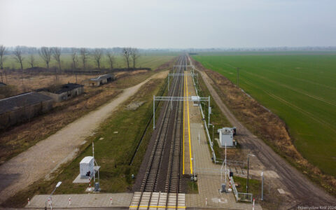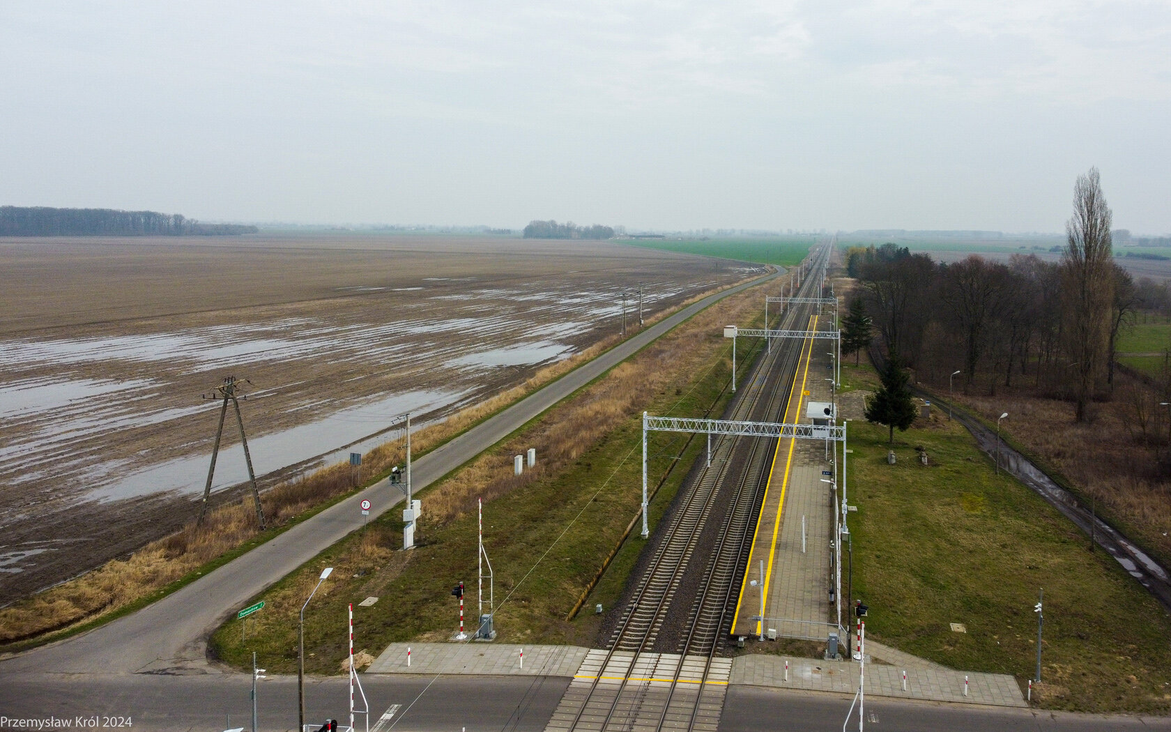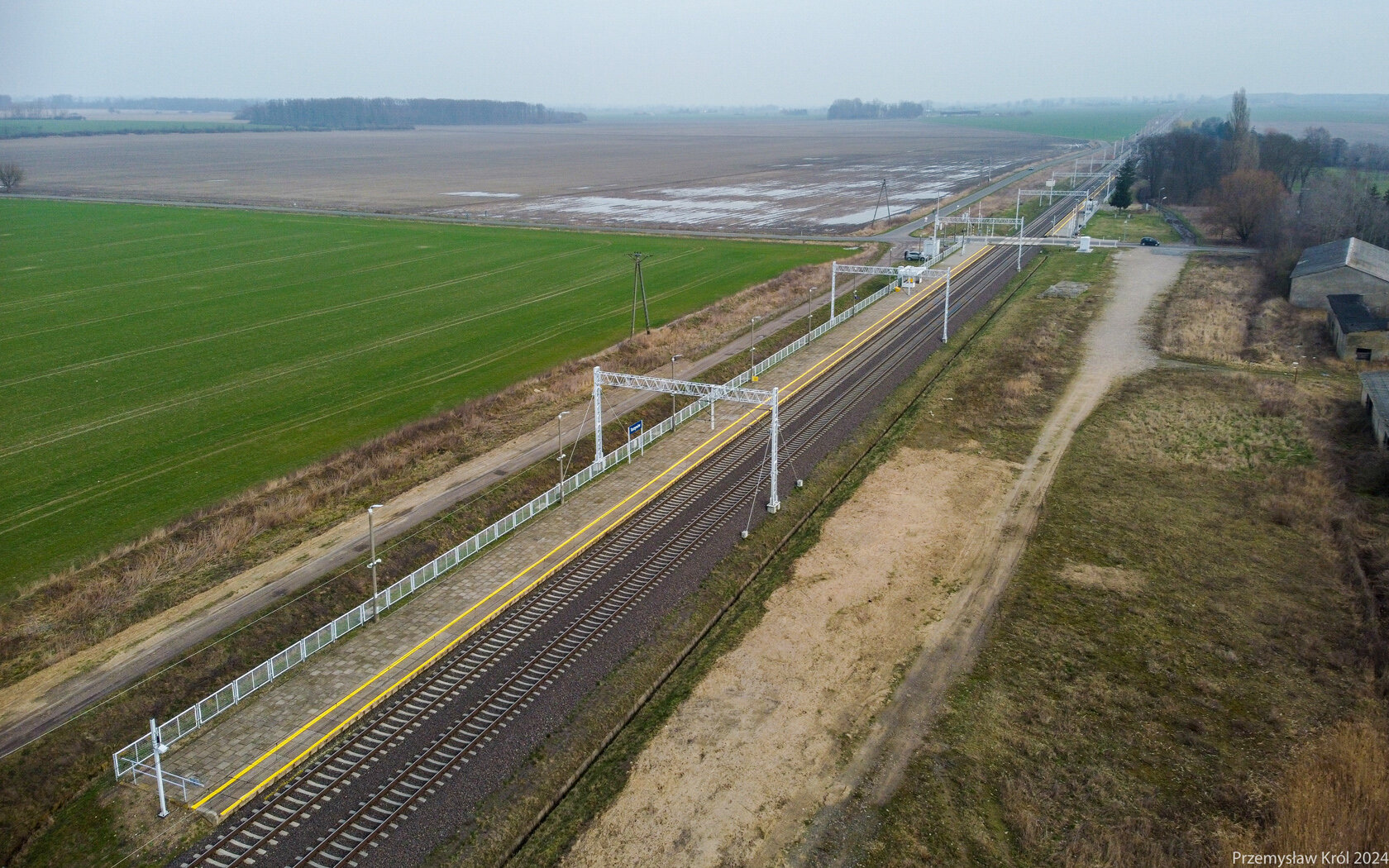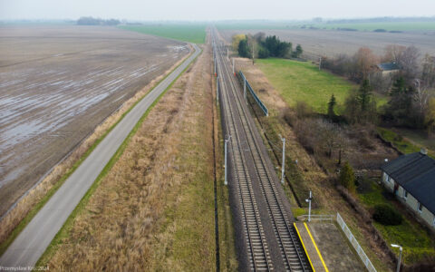 Zdjęcie z drona na peron numer 1 od wejścia.