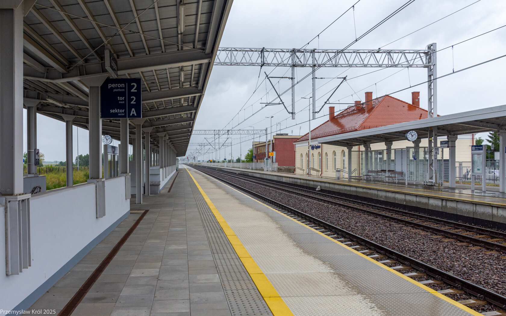 Peron drugi i tor numer 2, tym torem jeżdżą pociągi w kierunku Warszawy.