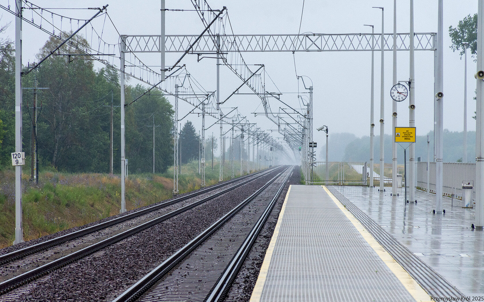 Kadr z pierwszego peronu w kierunku Białegostoku. Niestety nie dochodziłem do końca peronów z uwagi na padający deszcz.