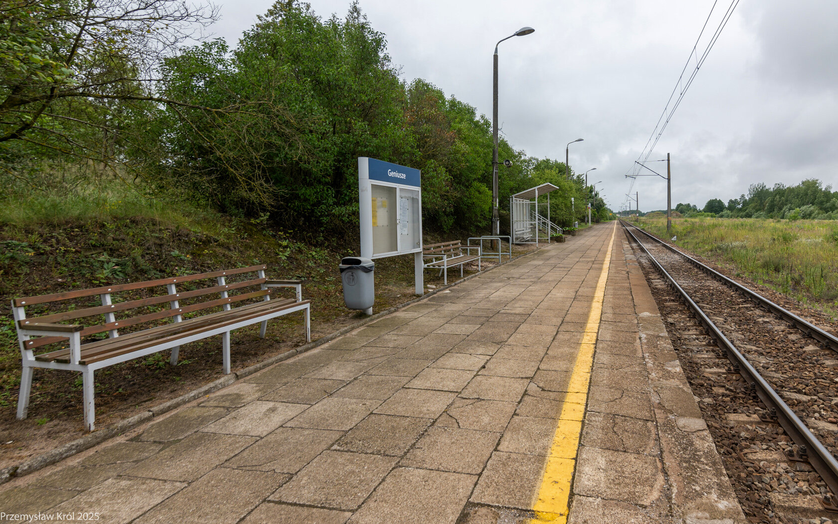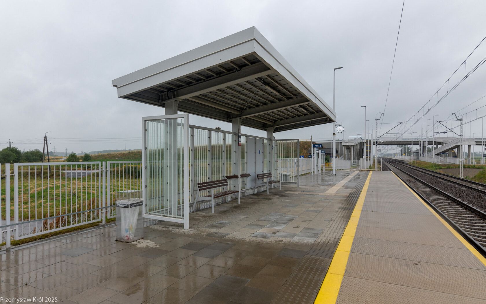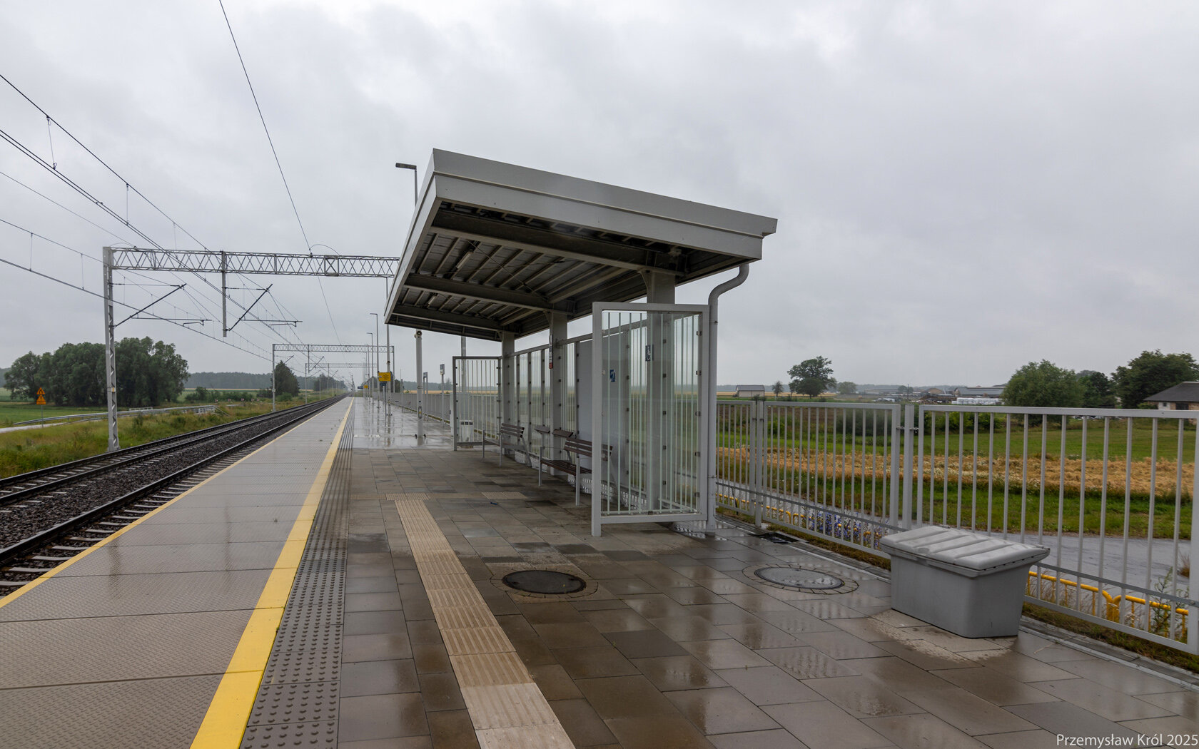 Poza wiatą peronową na platformie jest tylko jeszcze kilka ławek "pod chmurką", peron jest szeroki żeby podróżni mogli odejść na bezpieczną odległość w momencie przejazdu pociągu pospiesznego z pełną prędkością.