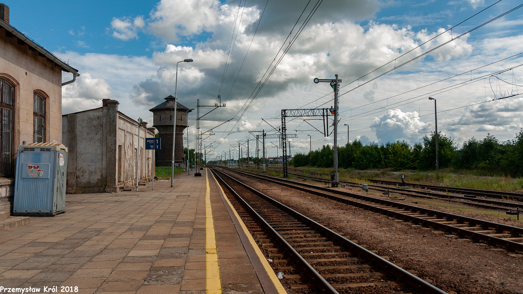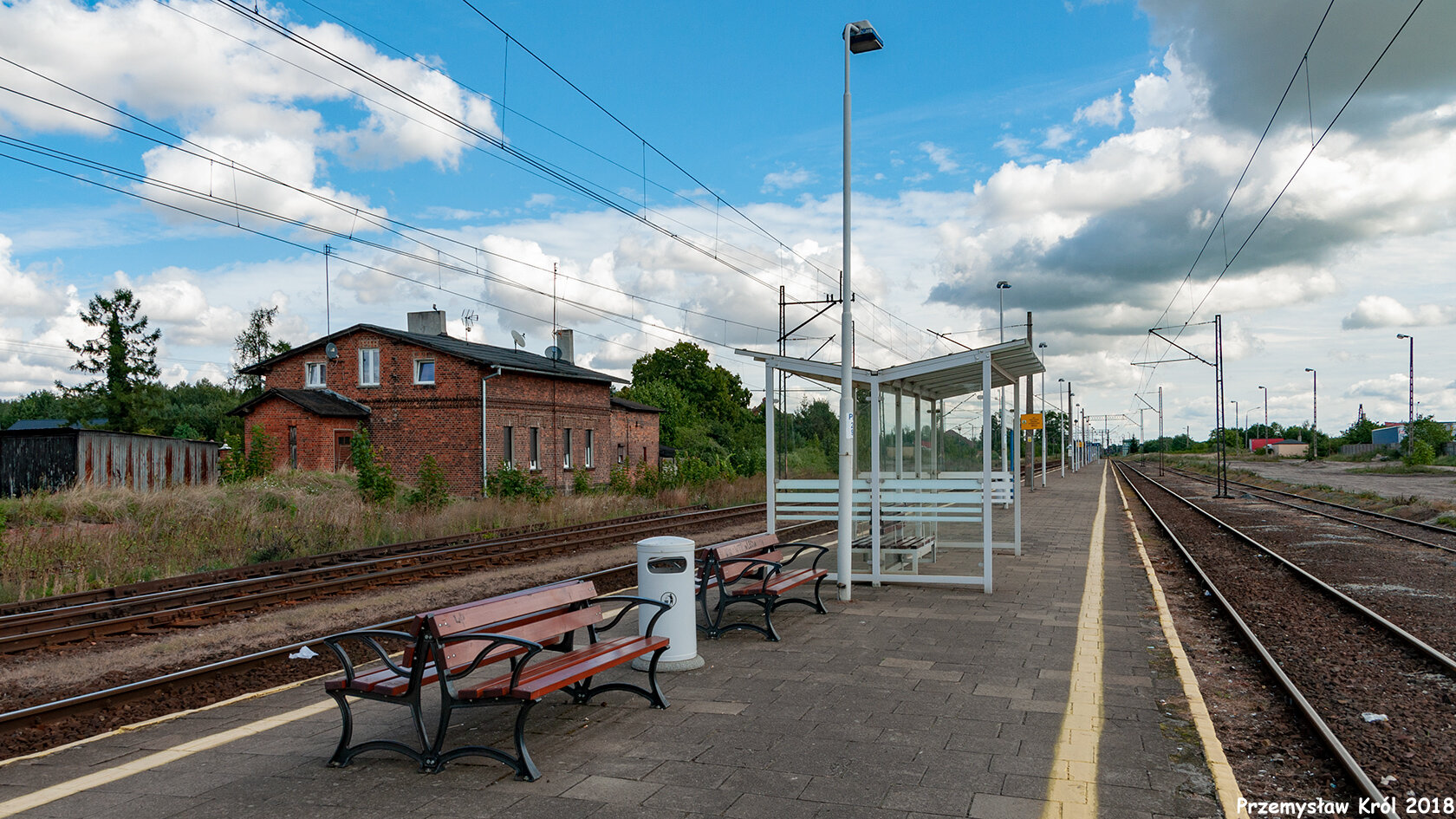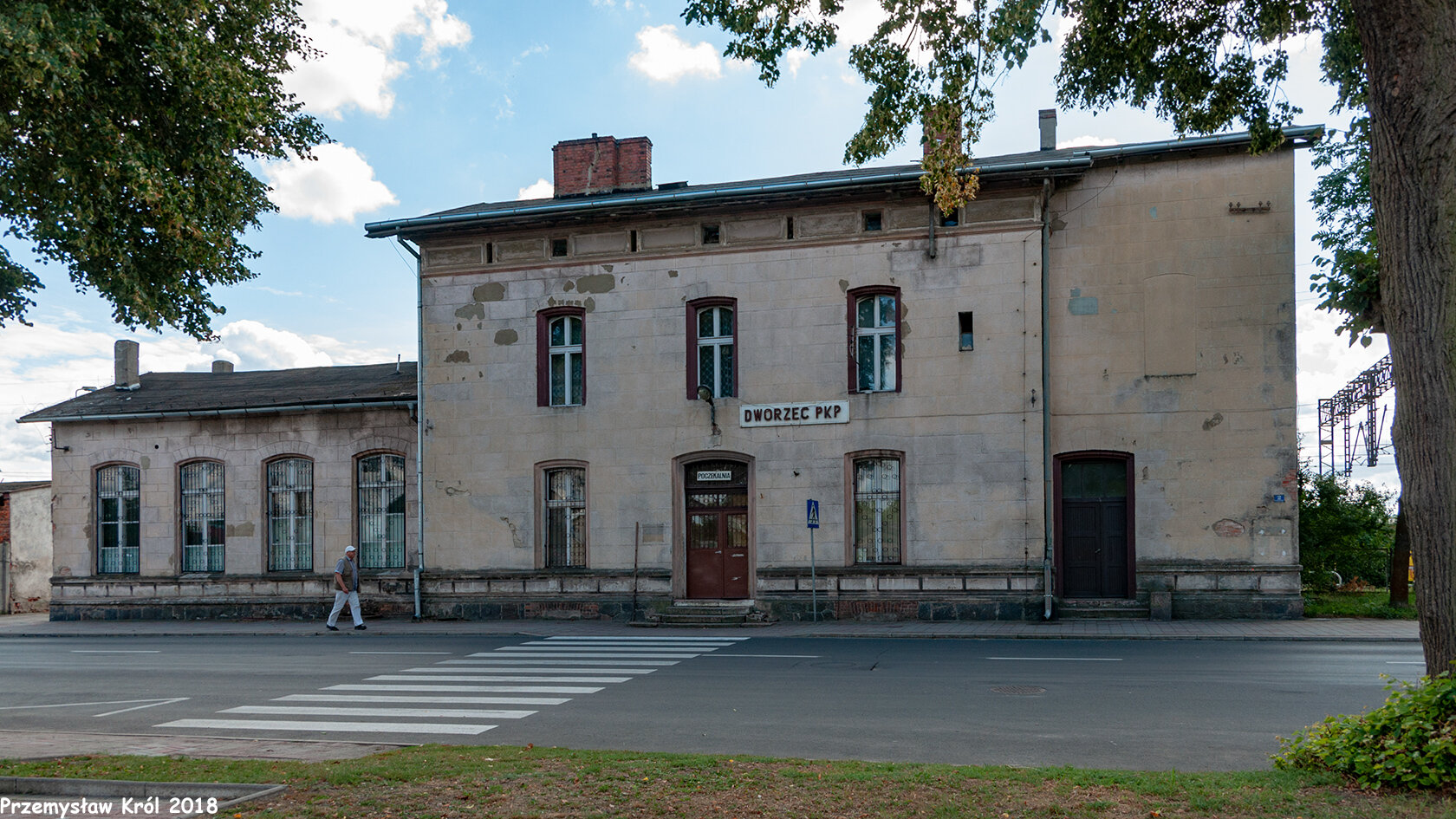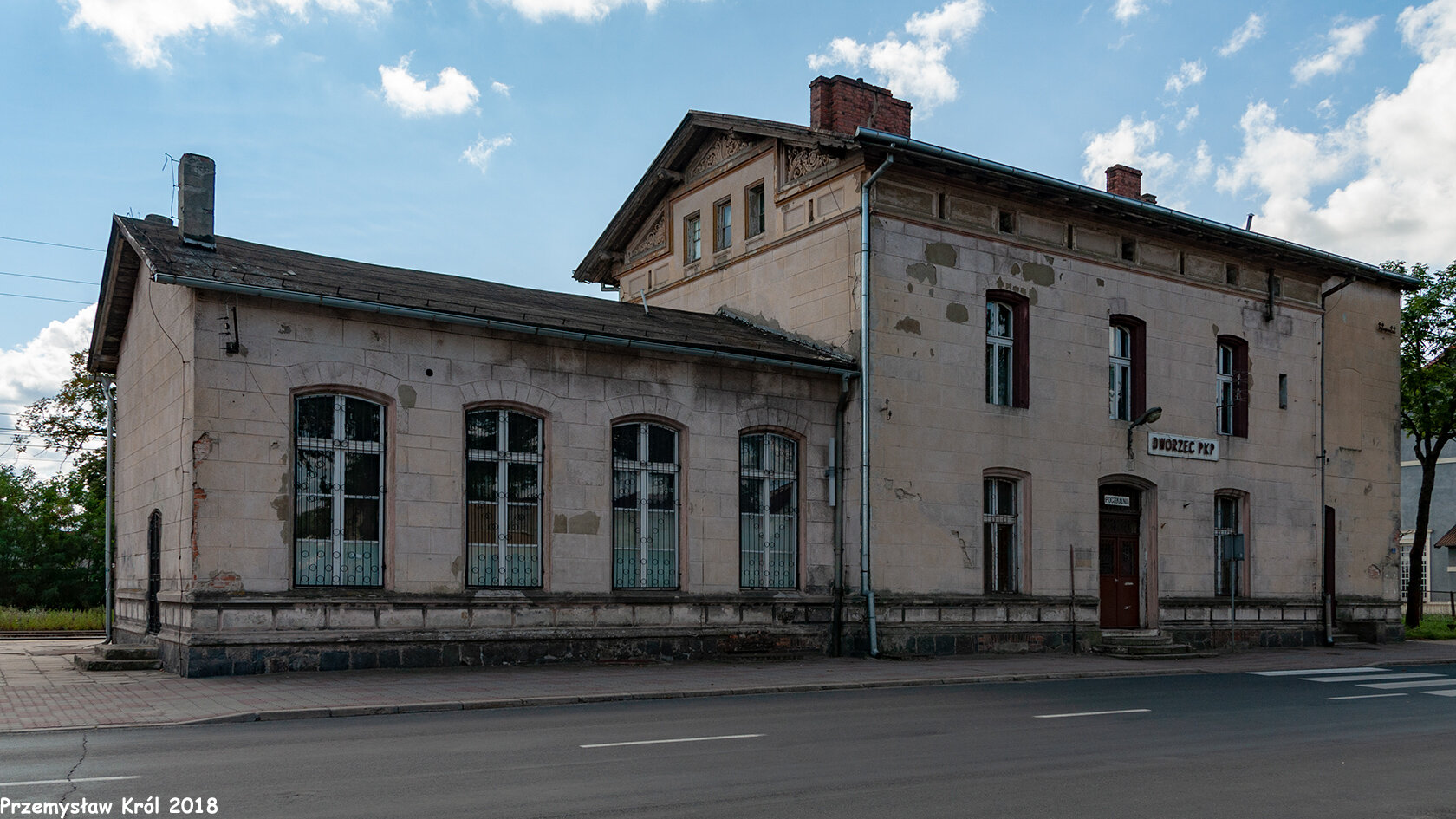 Widok na budynek dworca kolejowego w Pile od południowej strony.