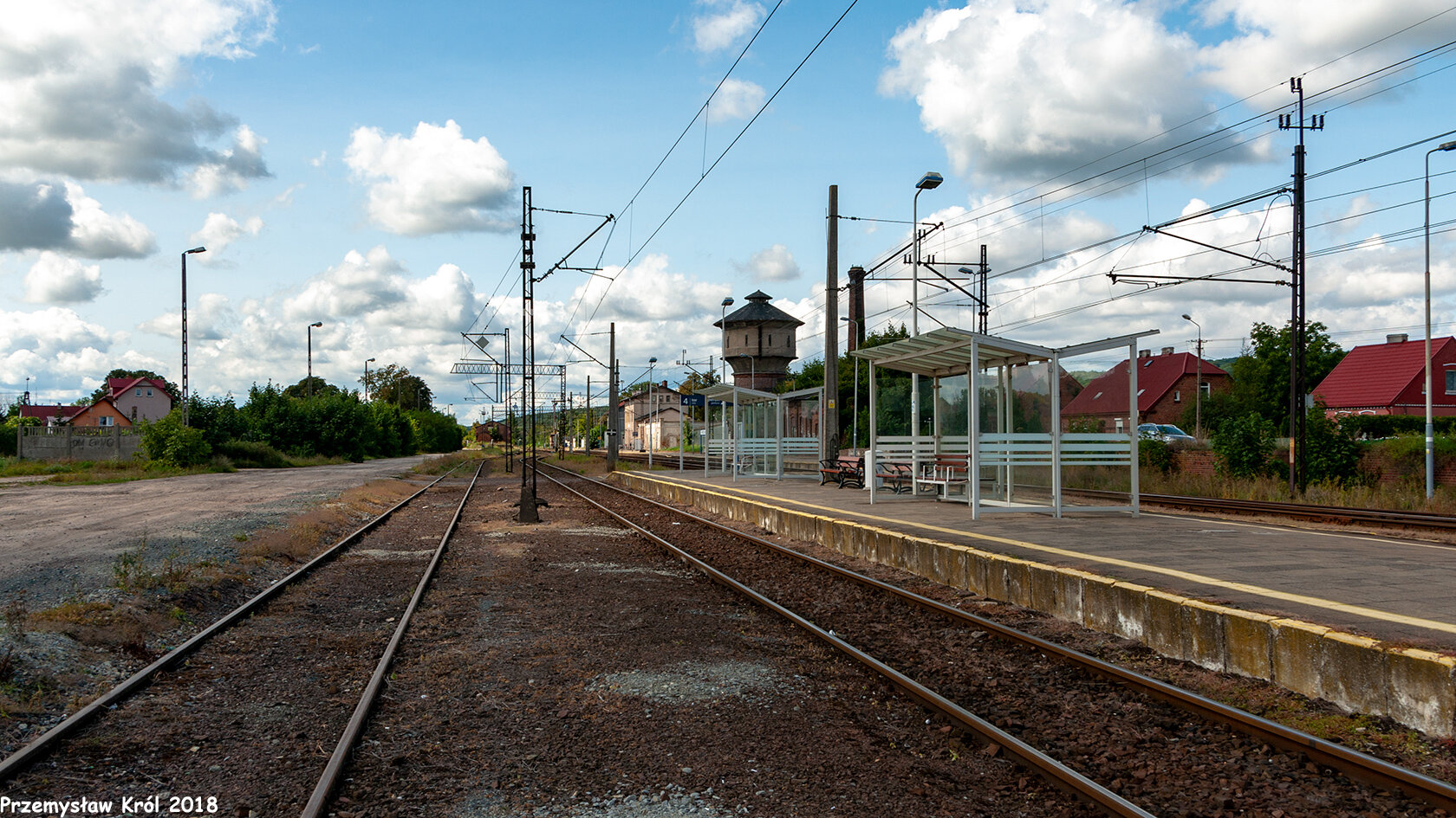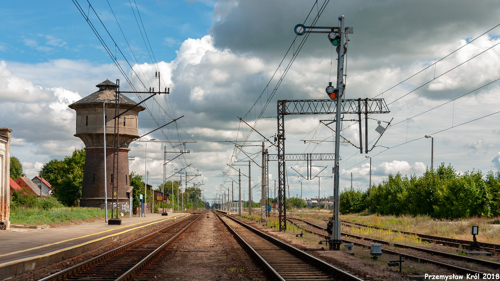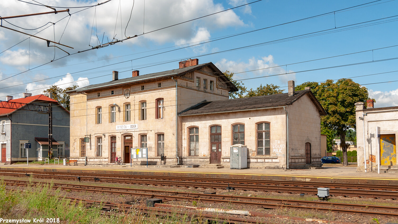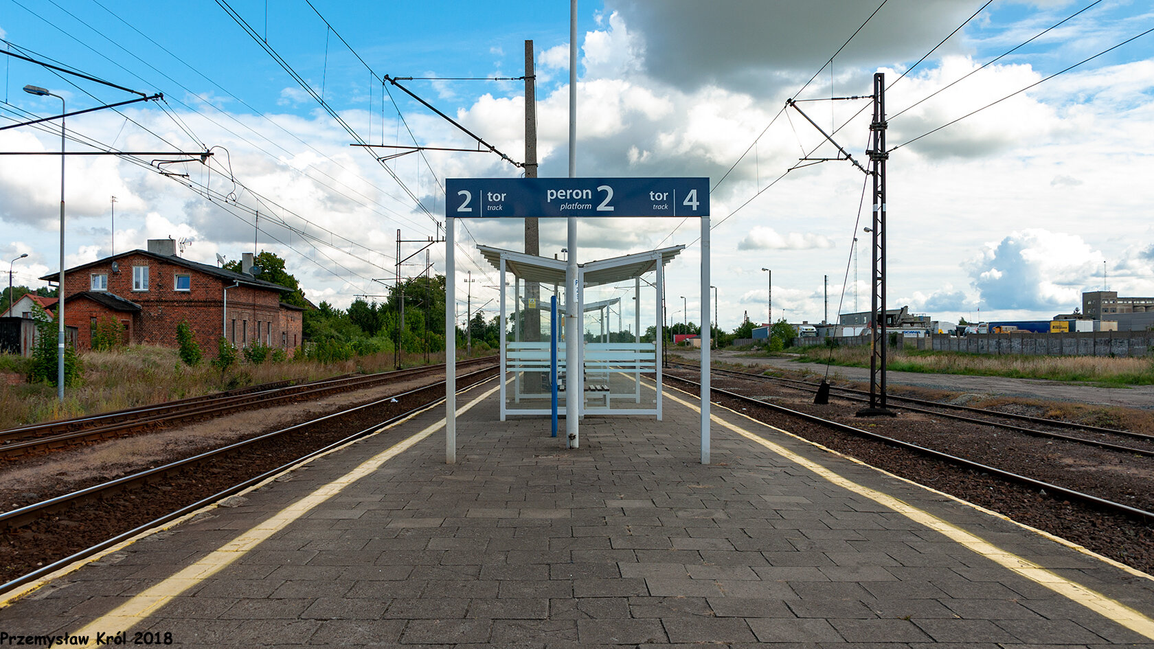 Widok na budynek dworca kolejowego w Pile od południowej strony.