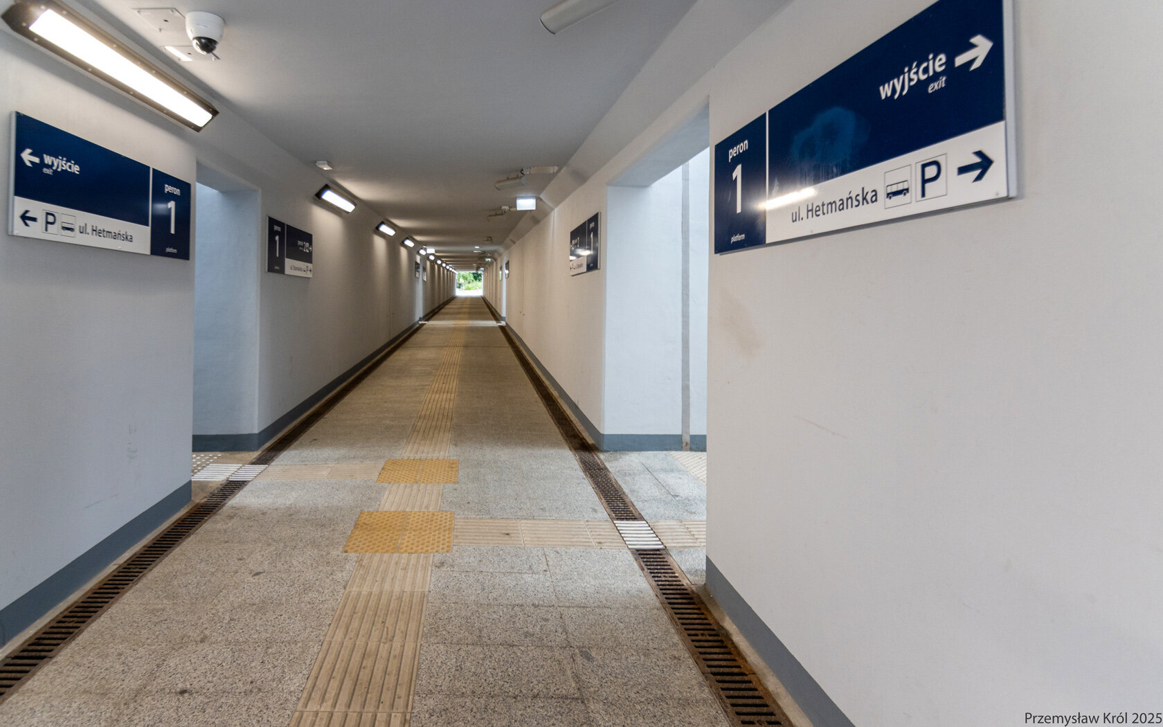 Wyjście z drugiego peronu do przejścia pod torami umożliwiającego opuszczenie terenu stacji.