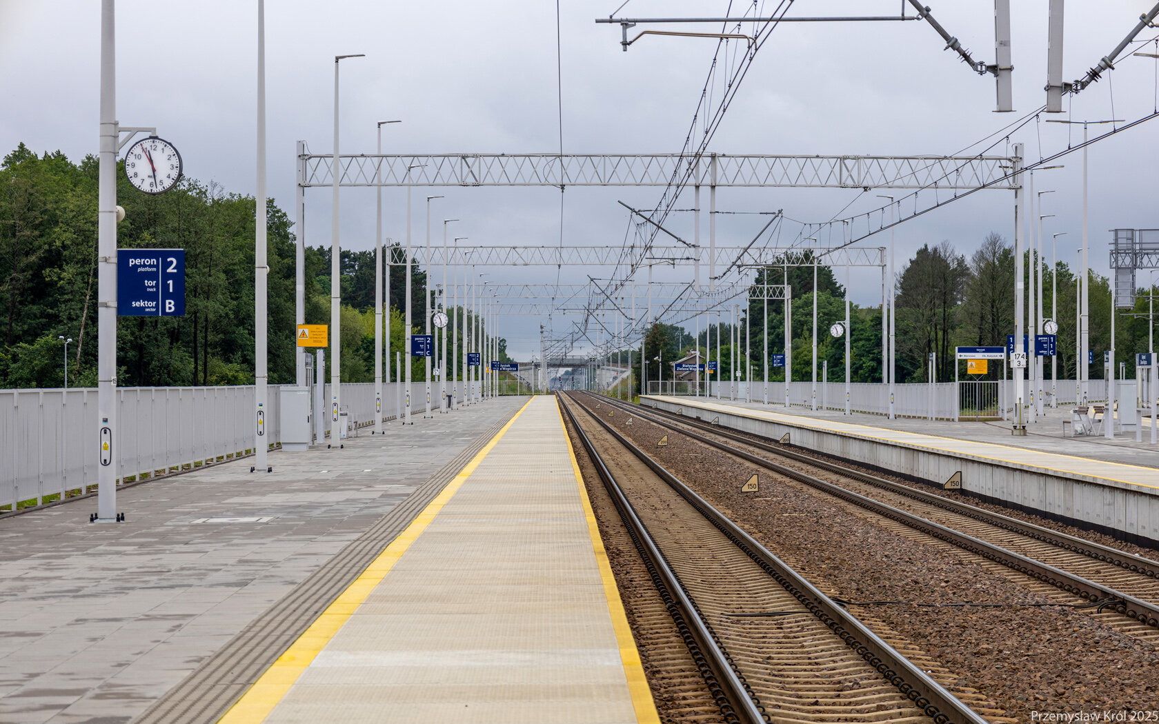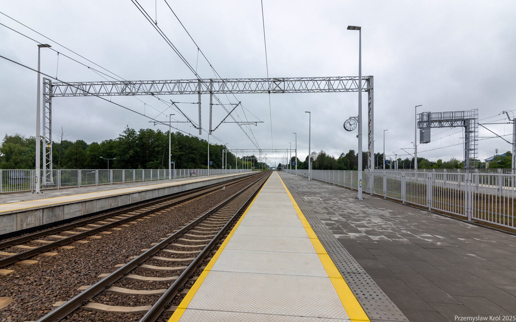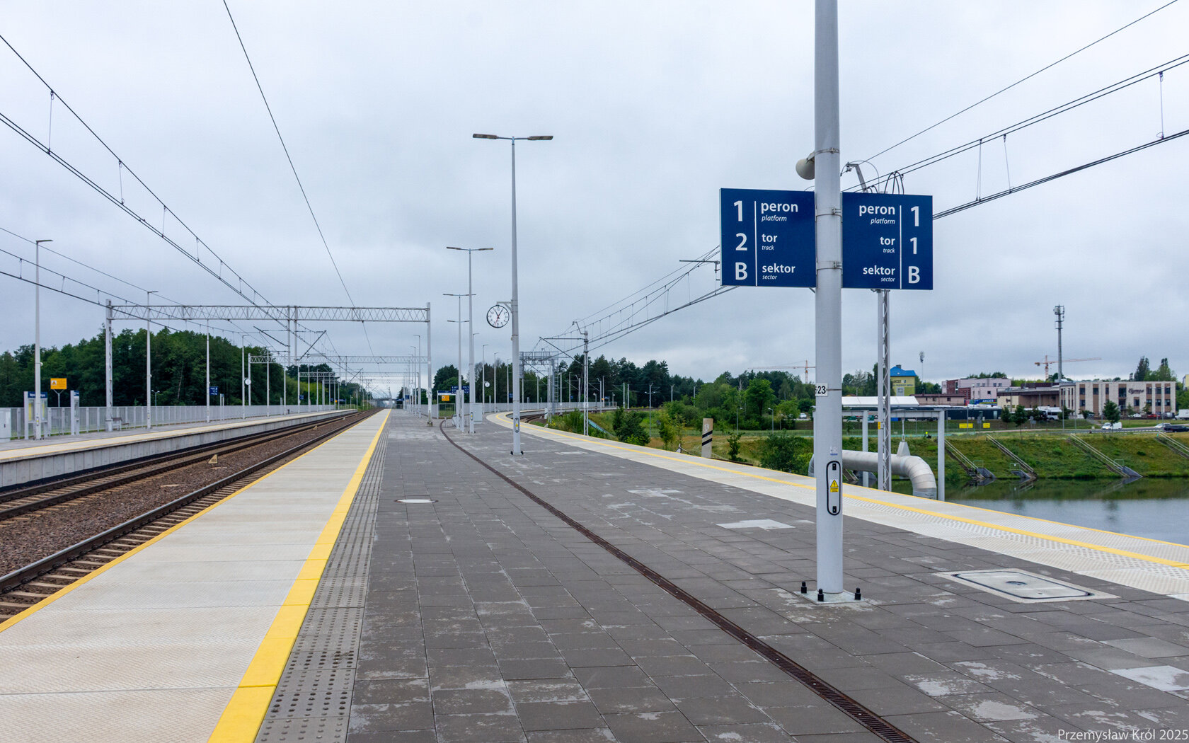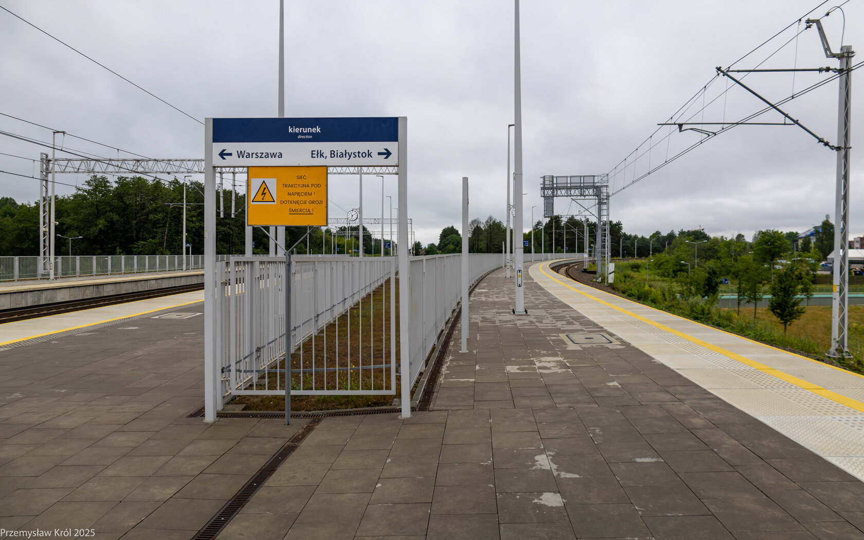 Peron numer 1 w pewnym miejscu rozdziela się na dwie części jedna po linii numer 6 na Warszawę, druga po linii 38 na Ełk i Białystok (?).