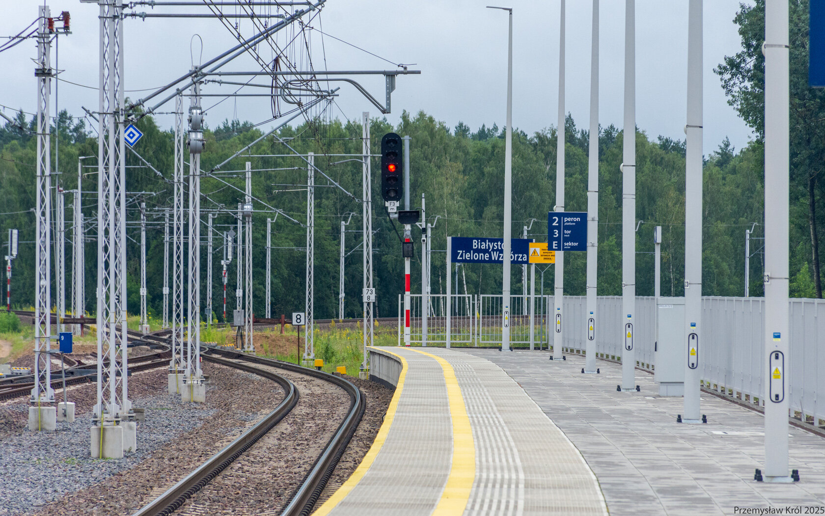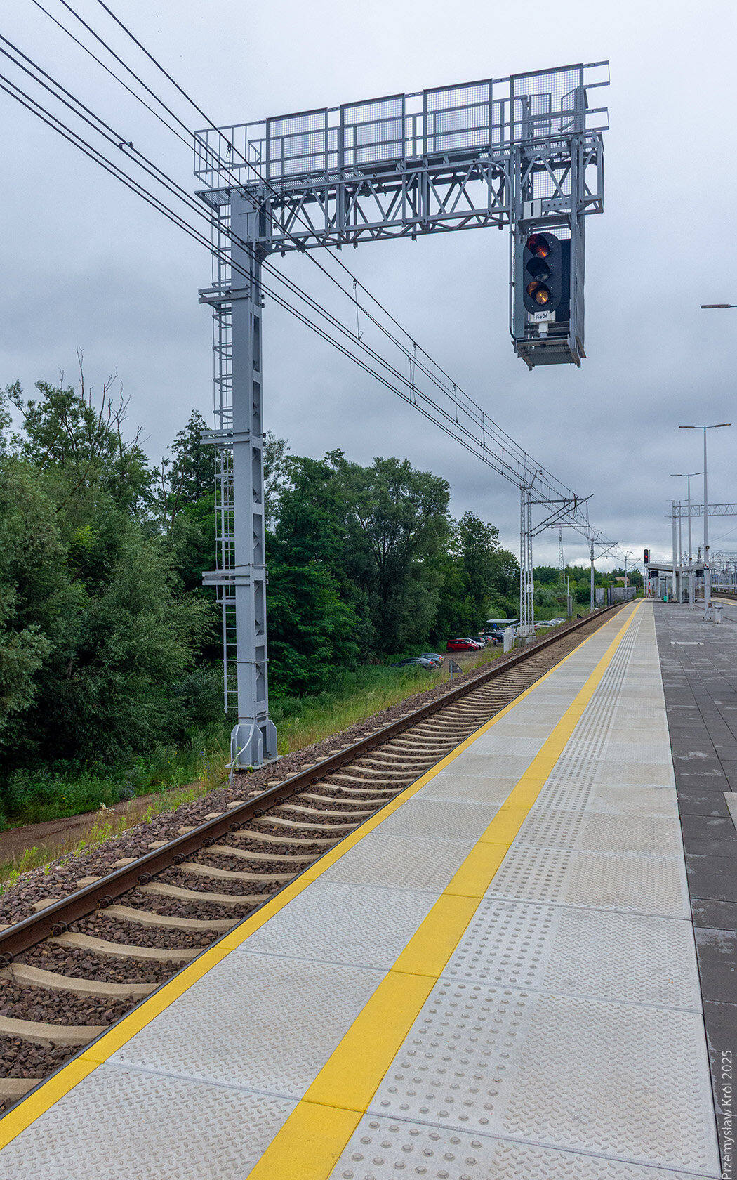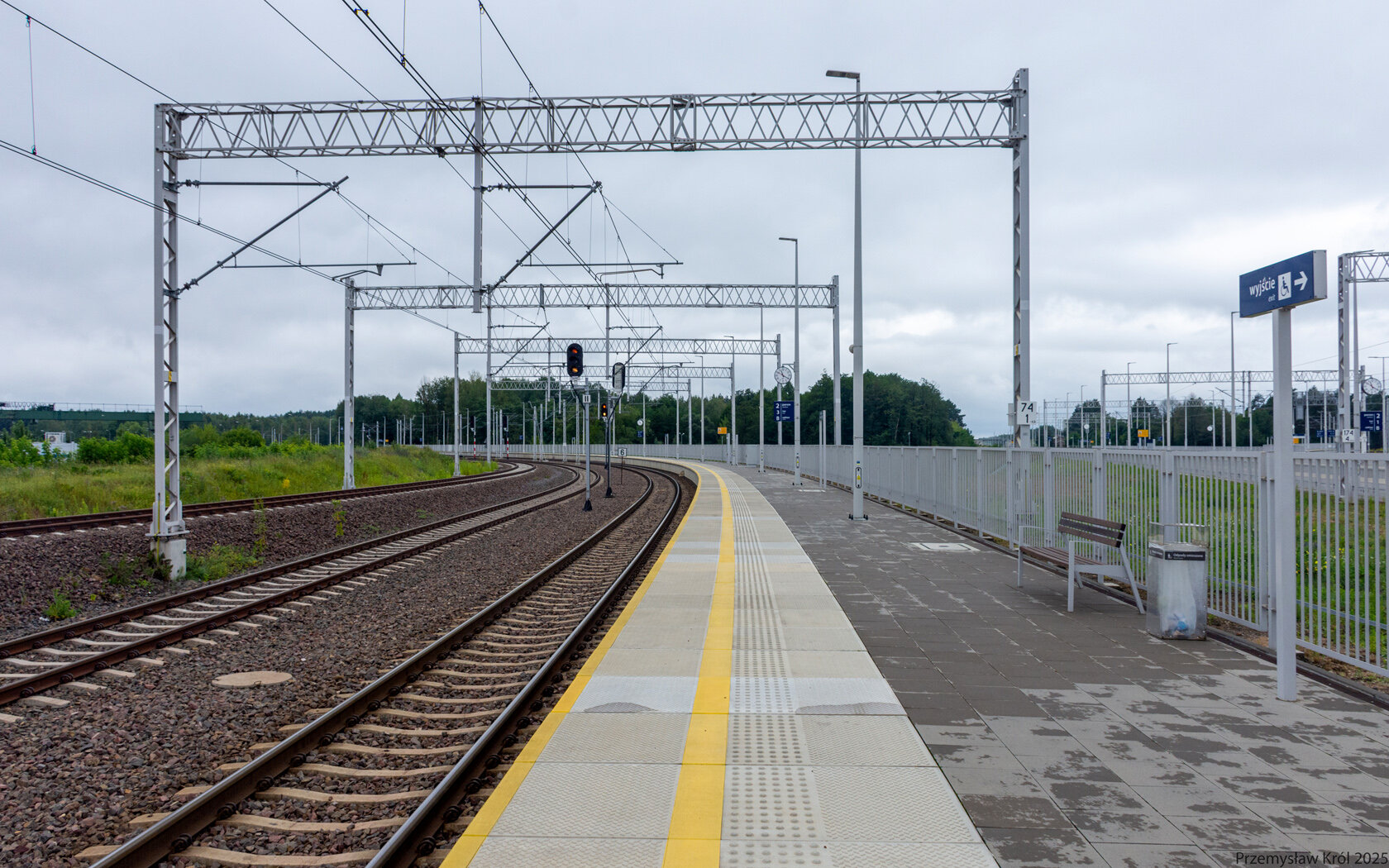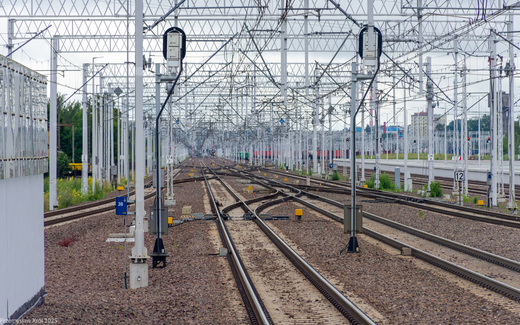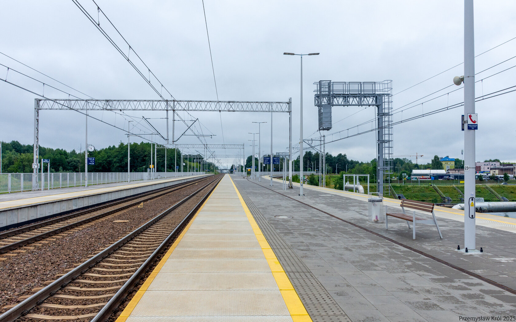 Peron numer 1 w pewnym miejscu rozdziela się na dwie części jedna po linii numer 6 na Warszawę, druga po linii 38 na Ełk i Białystok (?).