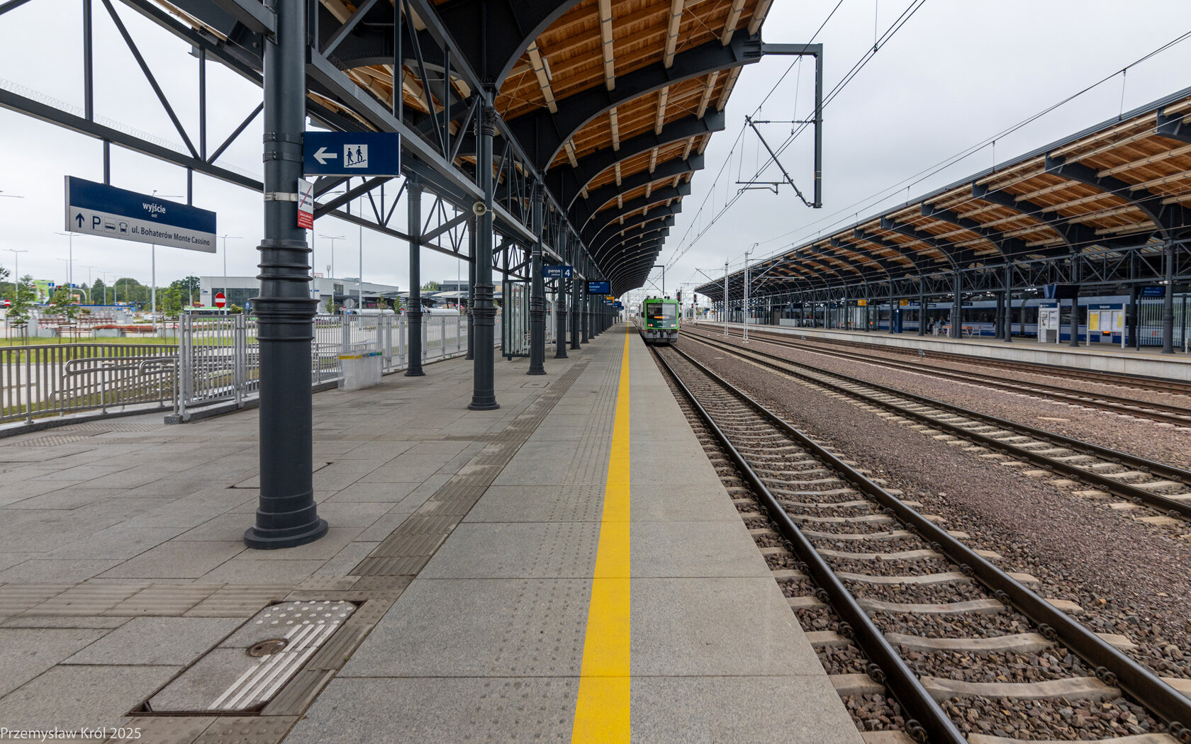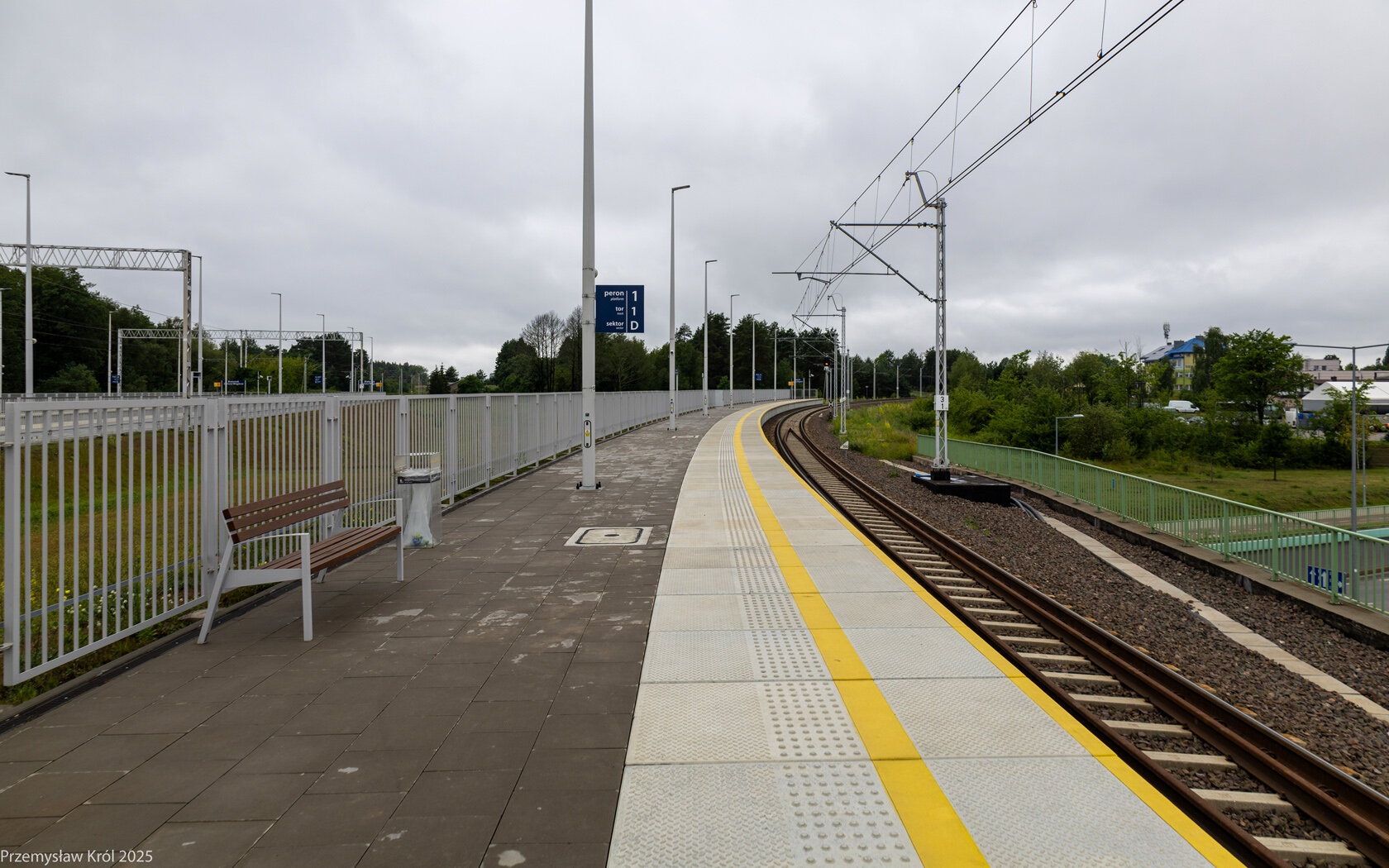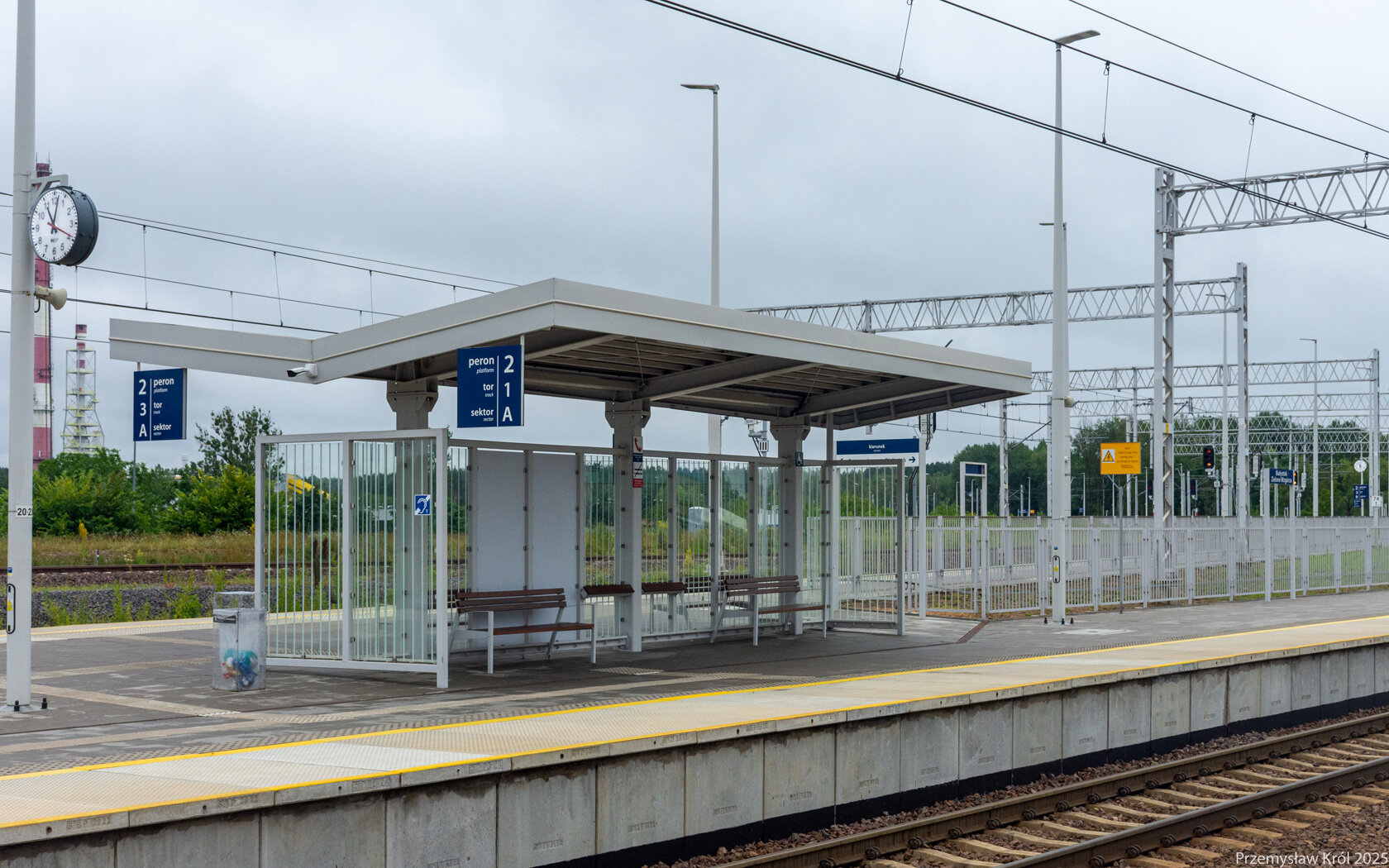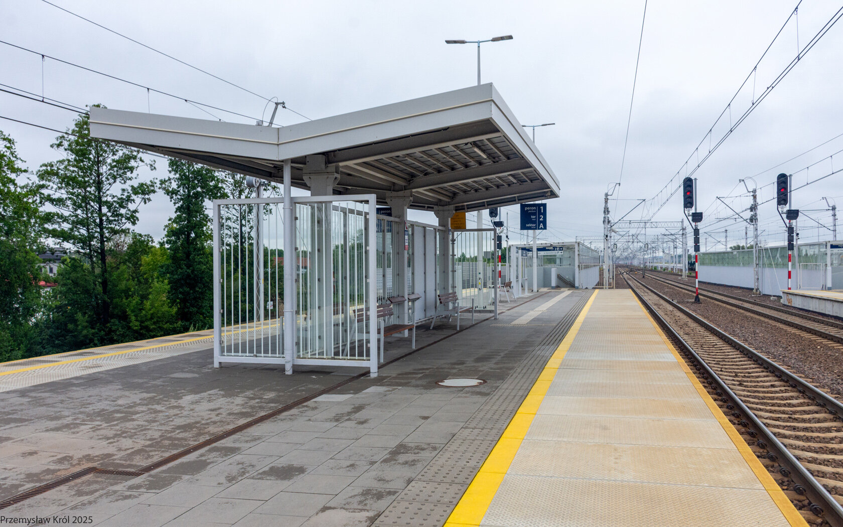 Przy tym peronie poza jedną dużą wiatą od wejścia nie ma już innych wiat, ale są ławki pod chmurką, choćby jedna.