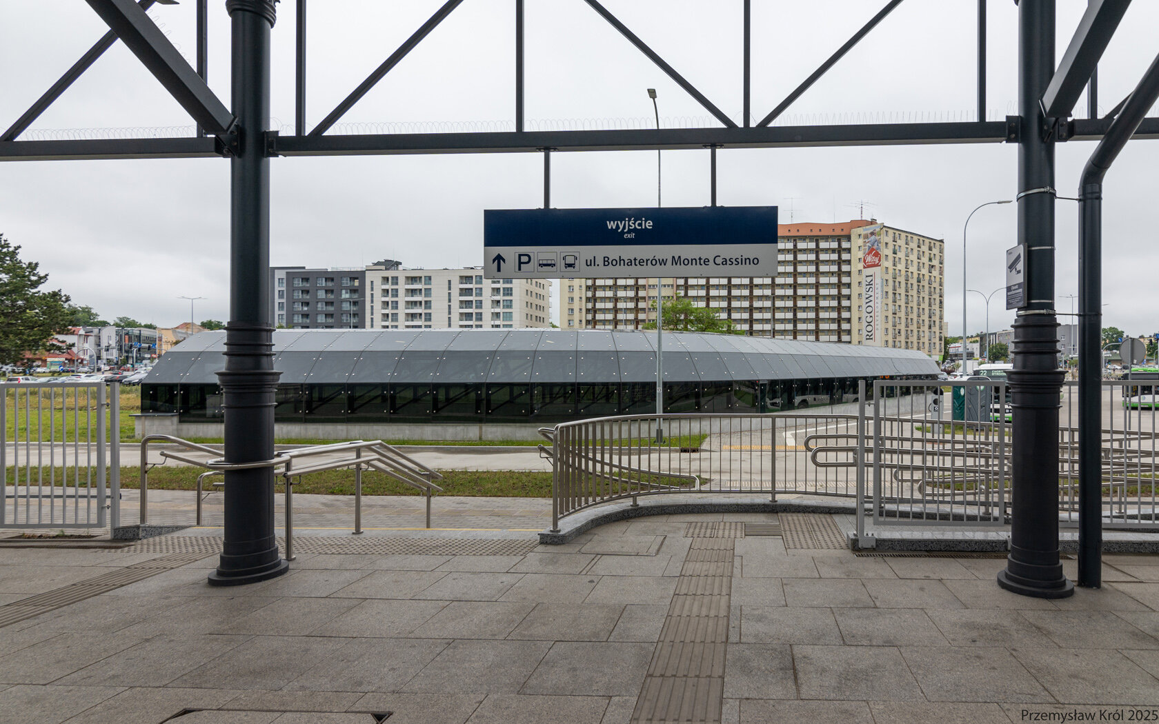 Sektor "D" pierwszego peronu jest umiejscowiony nad aleją Niepodległości / Paderewskiego w Białymstoku.