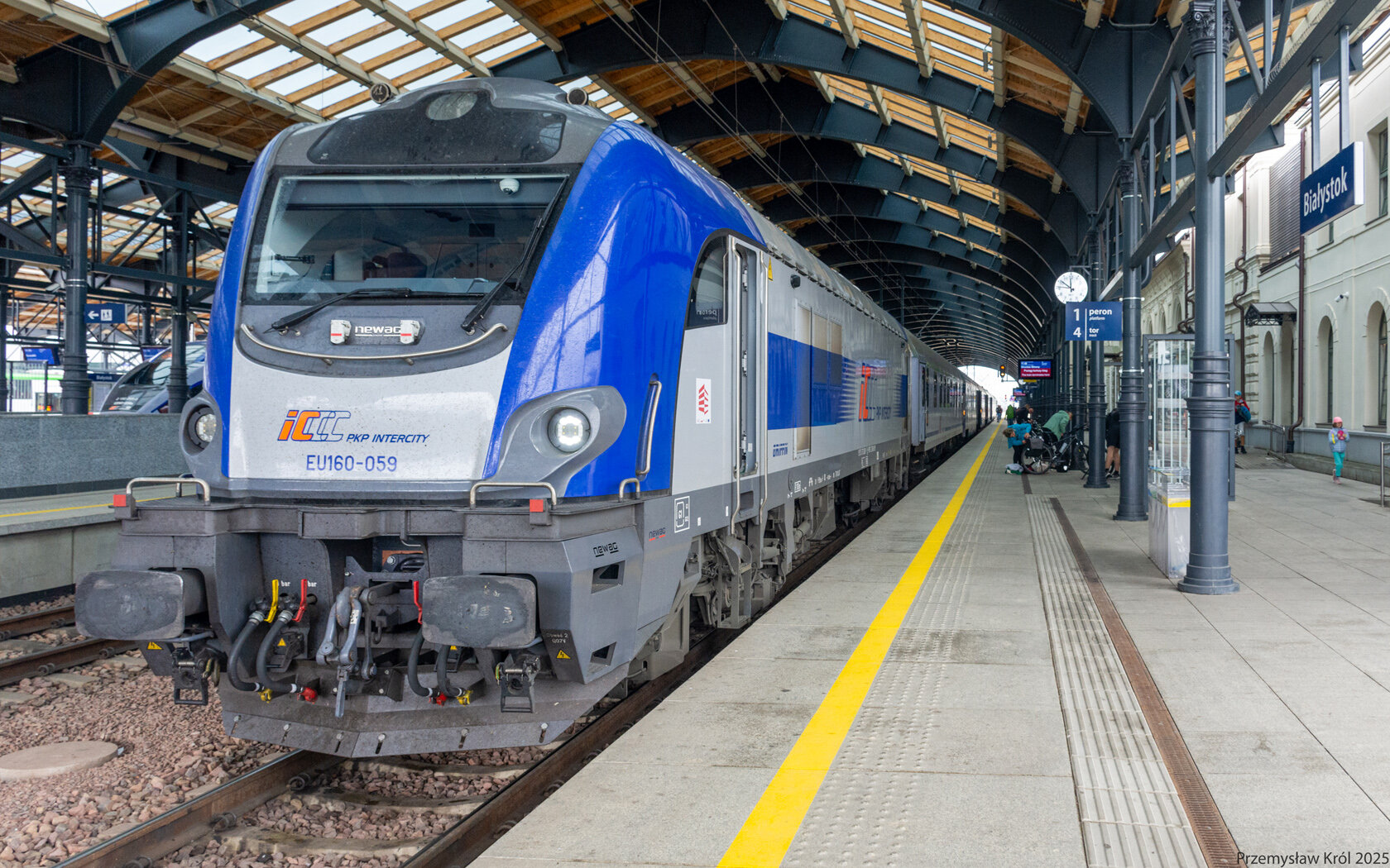 Lokomotywa serii EU160 przyprowadziła pociąg z Wrocławia, za moment zabierze go na tory postojowe przewoźnika.
