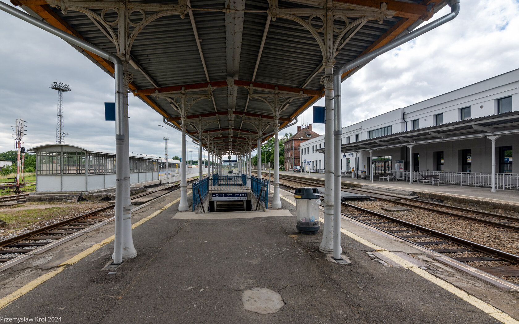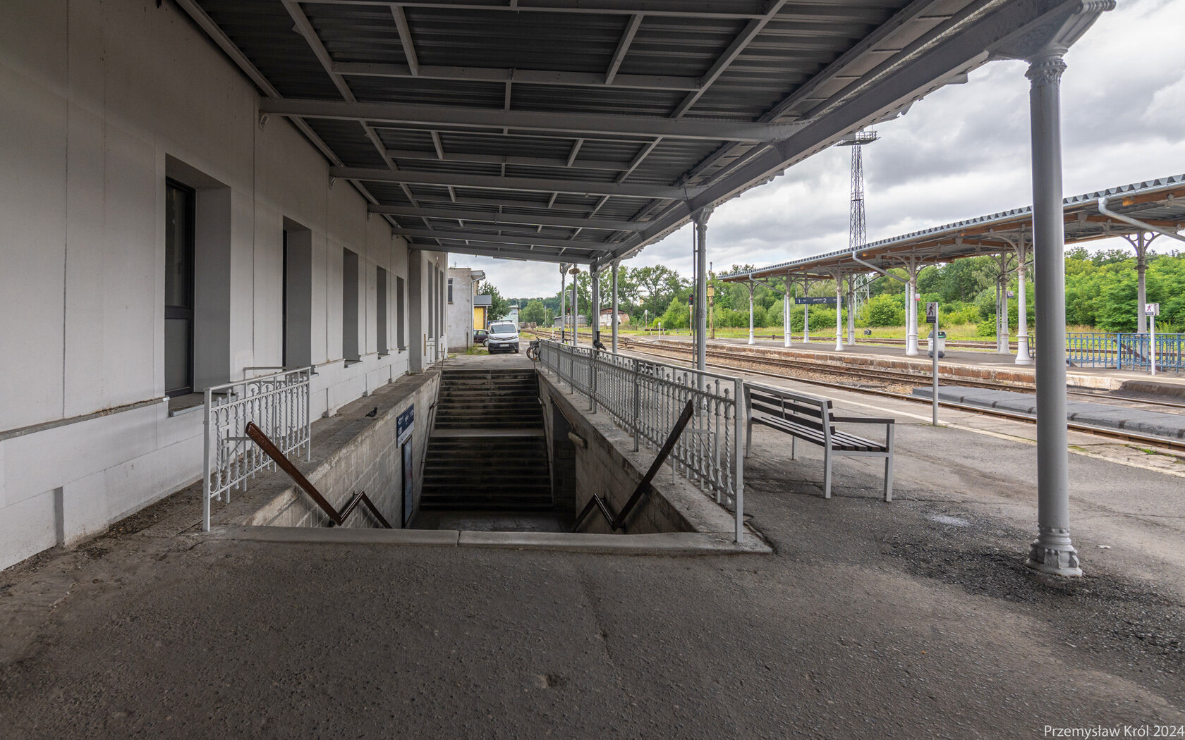 Część dworca przy którym jest zejście do podziemnego przejścia pod torami jest zadaszona.