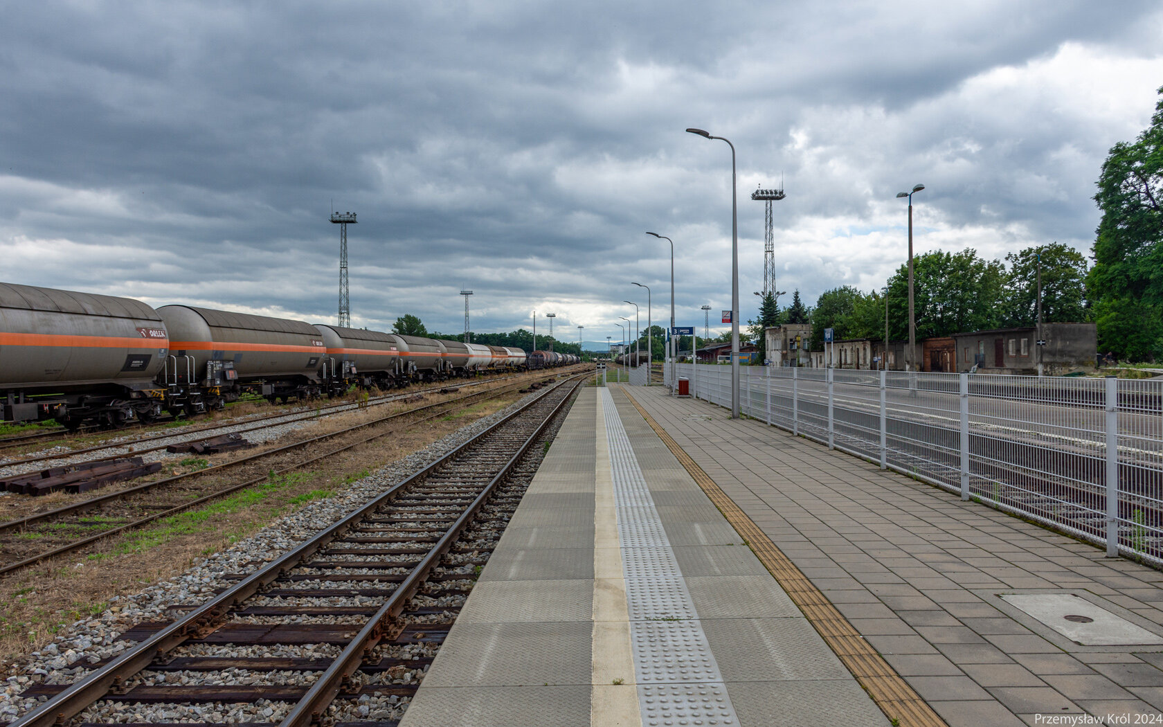 Perony są niskie brukowane z kostki, peron pierwszy jest dość szeroki, na drugim przydałoby się jakieś zabezpieczenie od toru gdzie nie ma krawędzi.