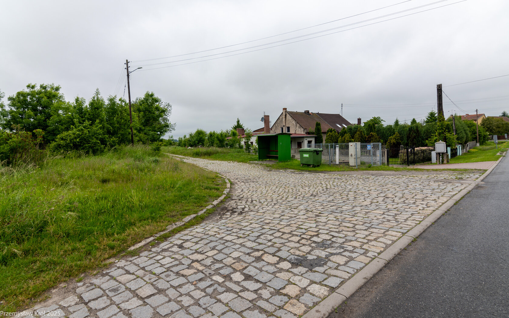 Wybrukowana droga dojazdowa do budynku dworca stacji.