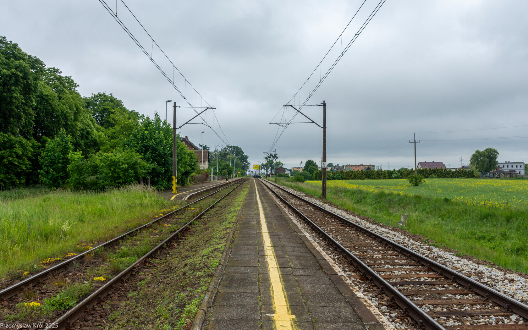 Koniec drugiego peronu w kierunku zachodnim, z tego peronu odjeżdżają pociągi jadące na wschód w stronę Kluczborka.