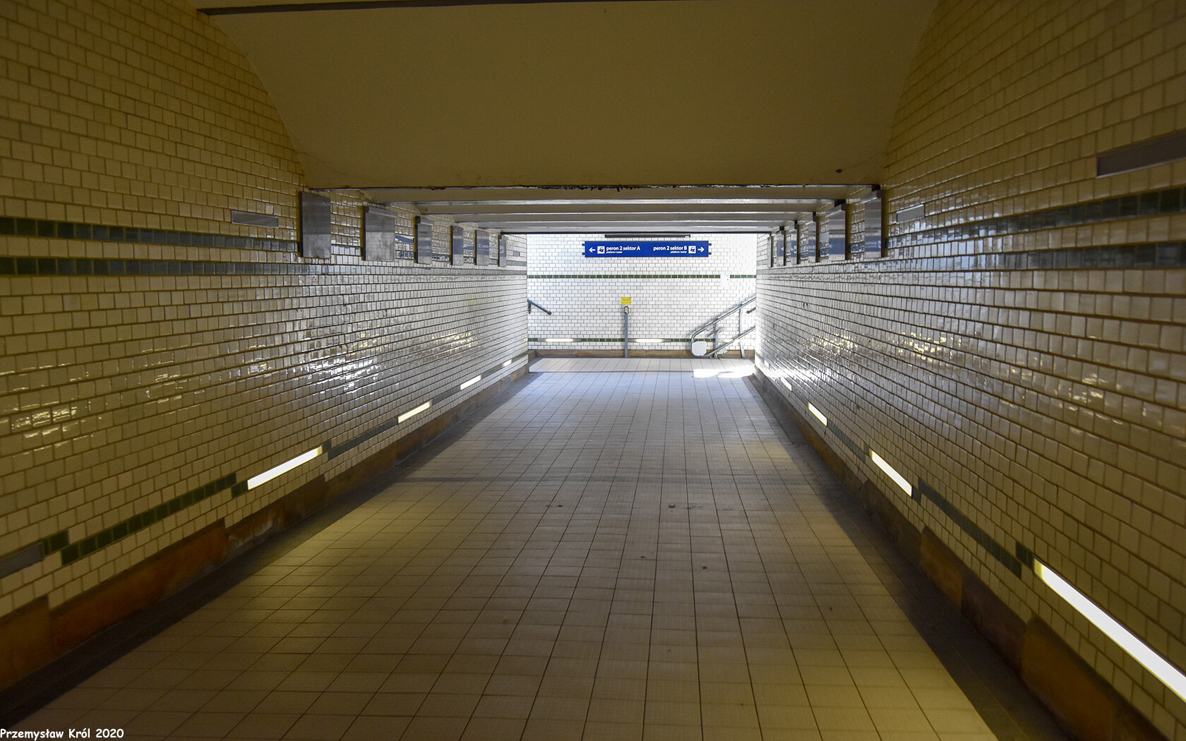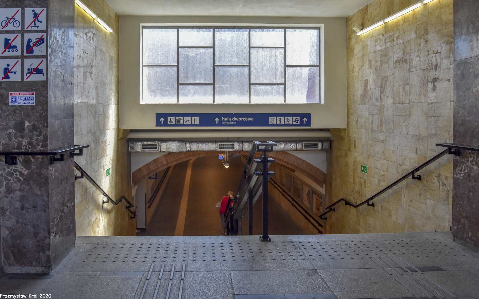 Podziemny tunel łączący perony 1 i 2 nie jest połączony z przejściem podziemnym wychodzącym na miasto.