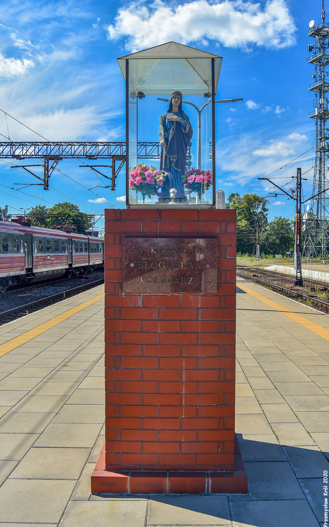 Pomnik Świętej Katarzyny patronki kolejarzy.