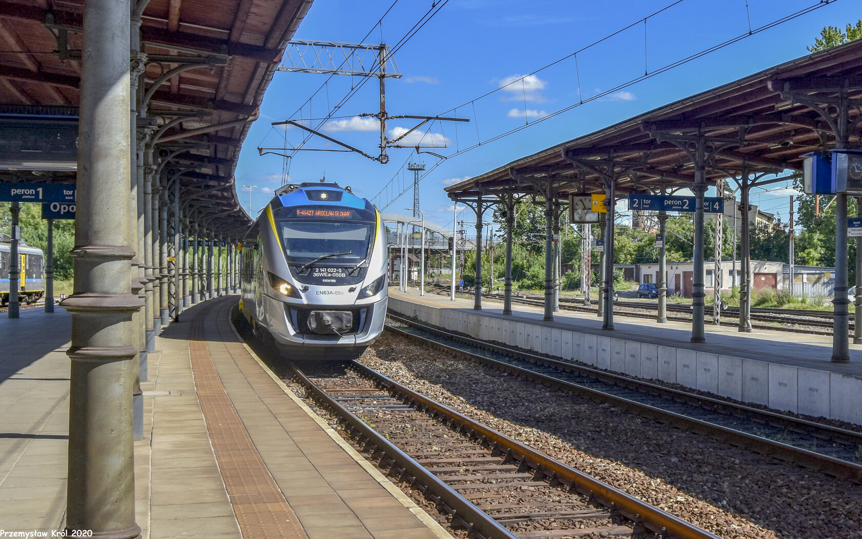 Nowoczesny pociąg produkcji firmy Newag wozi pasażerów pomiędzy Opolem, a Wrocławiem.