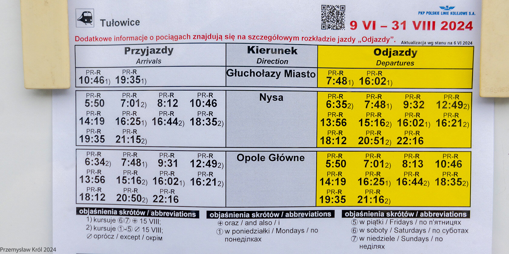 Rozkład jazdy, pociągi od mojej ostatniej wizyty znów się tu zatrzymują.