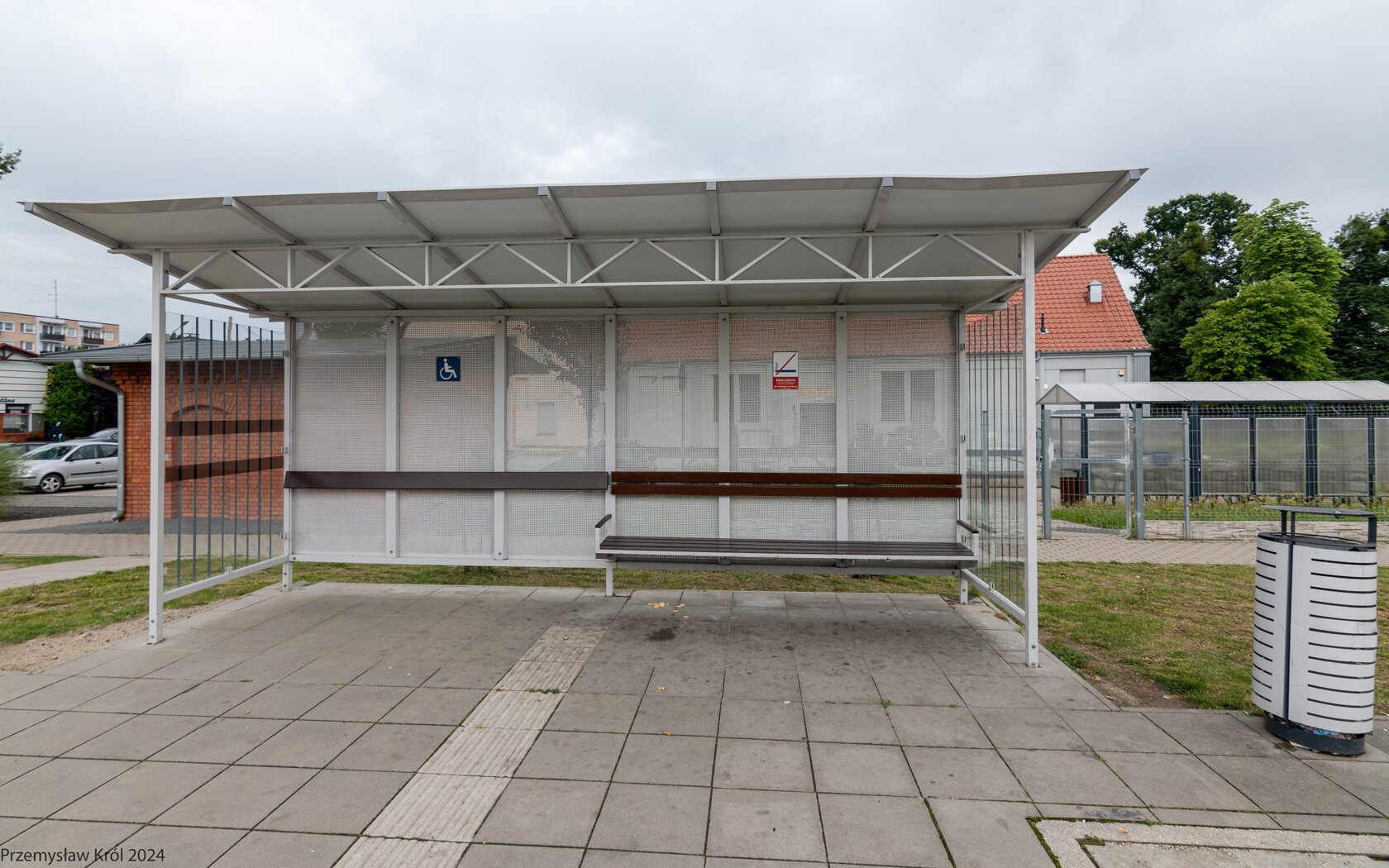 Za wiatą przystankową są już tylko ławki na świeżym powietrzu.