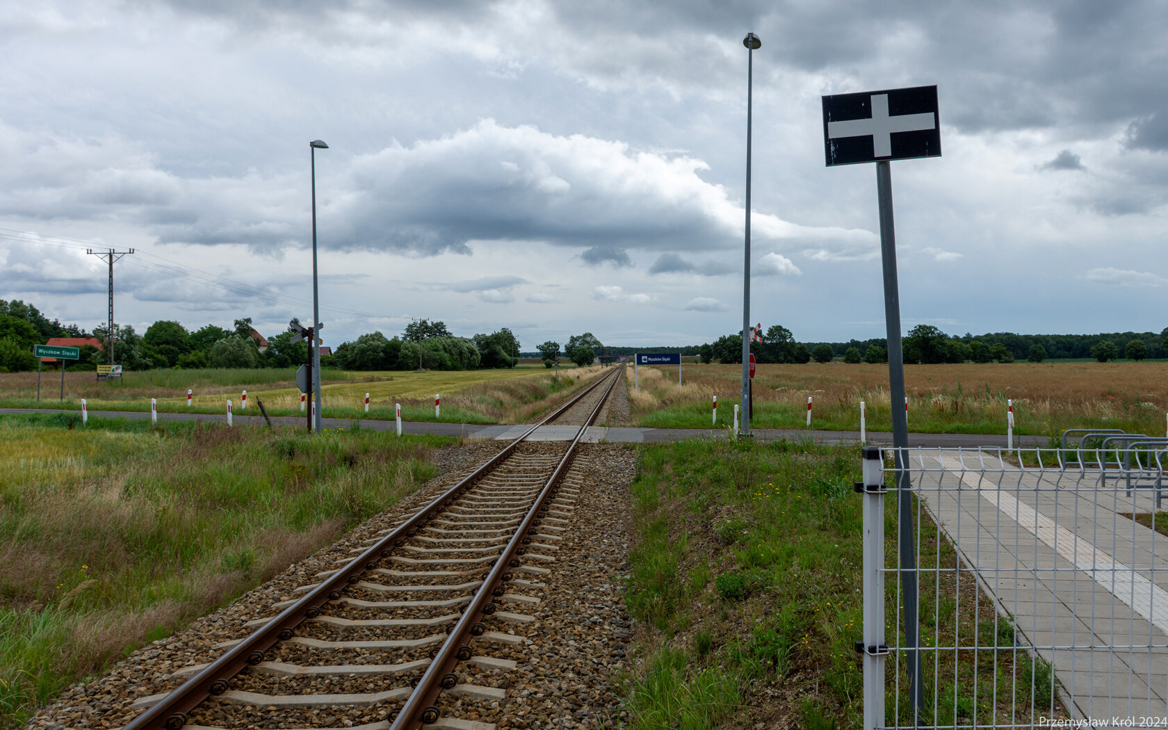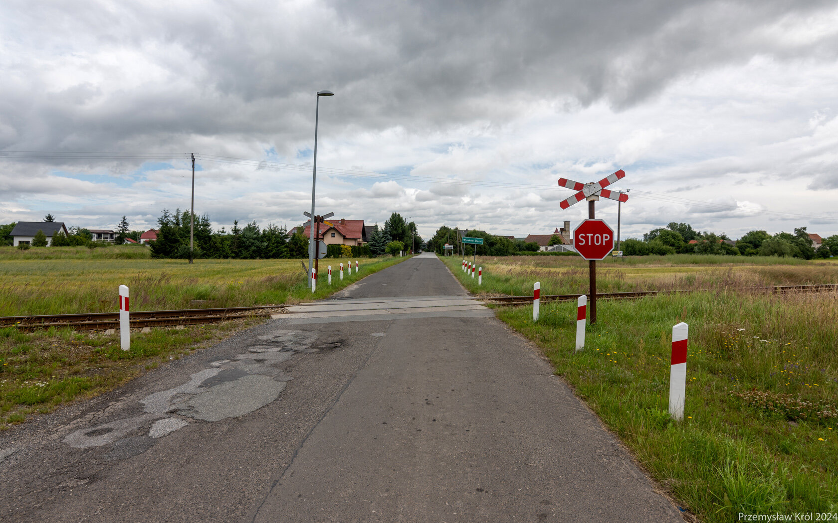 Przejazd drogowy przy którym jest położony przystanek, można byłoby zainwestować w bezpieczeństwo, choć widoczność jest całkiem niezła.